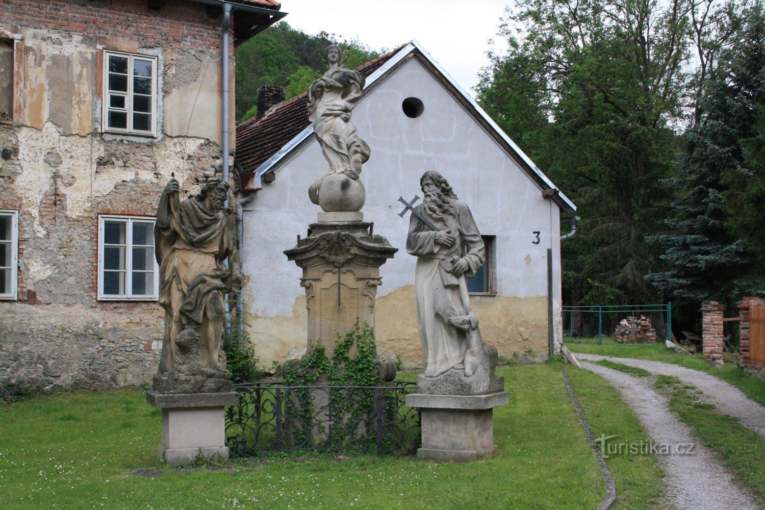 Ale zajímavé věci se také nacházejí v obci samotné. Kromě kostela, jeskyně, bývalého kláštera či studánky spočinul můj zrak také na zajímavé skulptuře.
