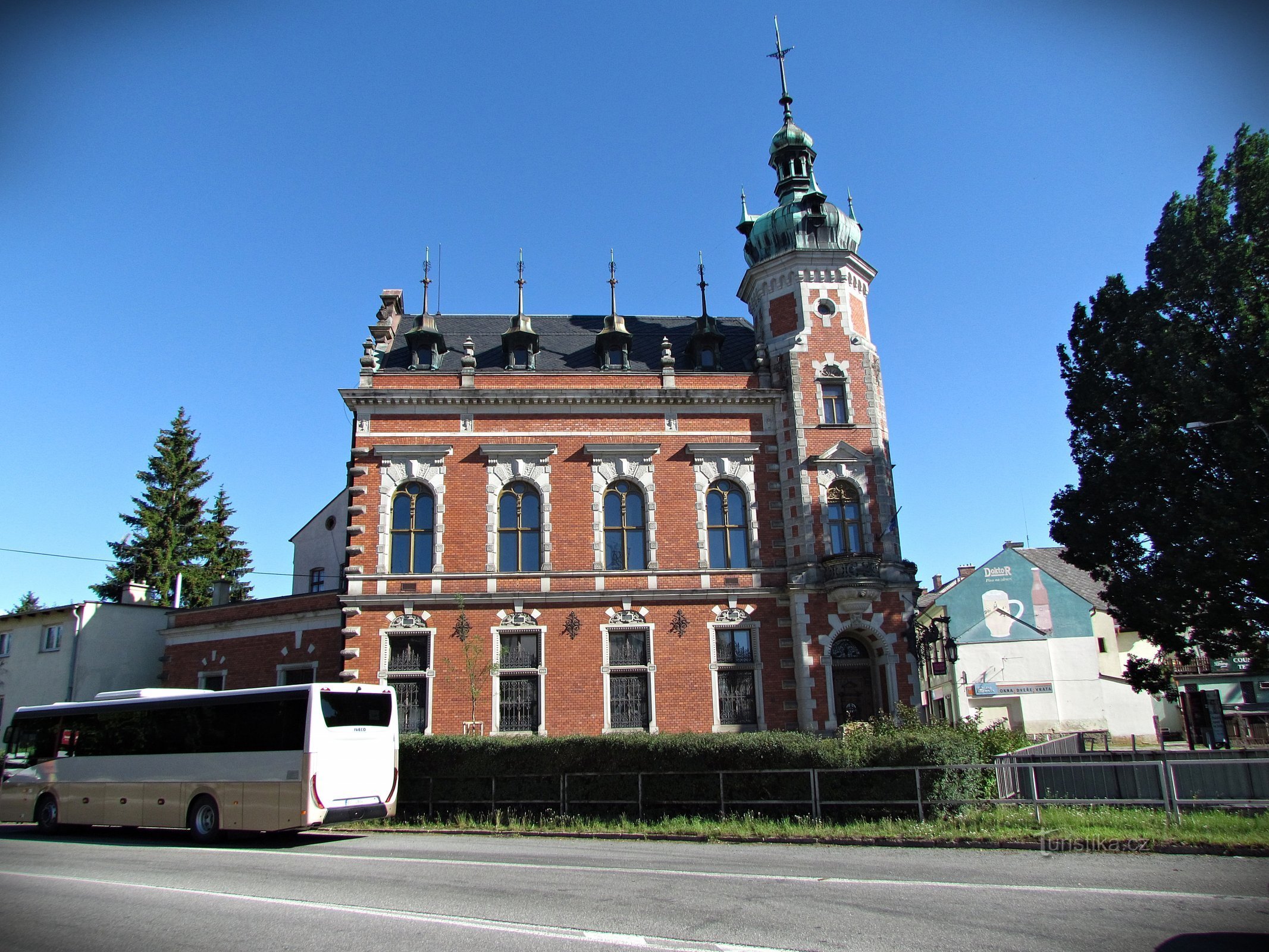 Pokud se vydáte do centra města od svitavského vlakového nádraží po modré značce, cestou nejprve minete dvě zajímavé sakrální památky (kapli sv.Jiří a kostel sv.Jiljí), ale můžu vám zaručit, že už ta první „světská“ vám je z mozku naprosto vymaže. Jen pár desítek metrů od náměstí Míru se totiž nad okrajem rušné komunikace Máchova alej vypíná načinčané červenobílé stavení s honosným průčelím a…