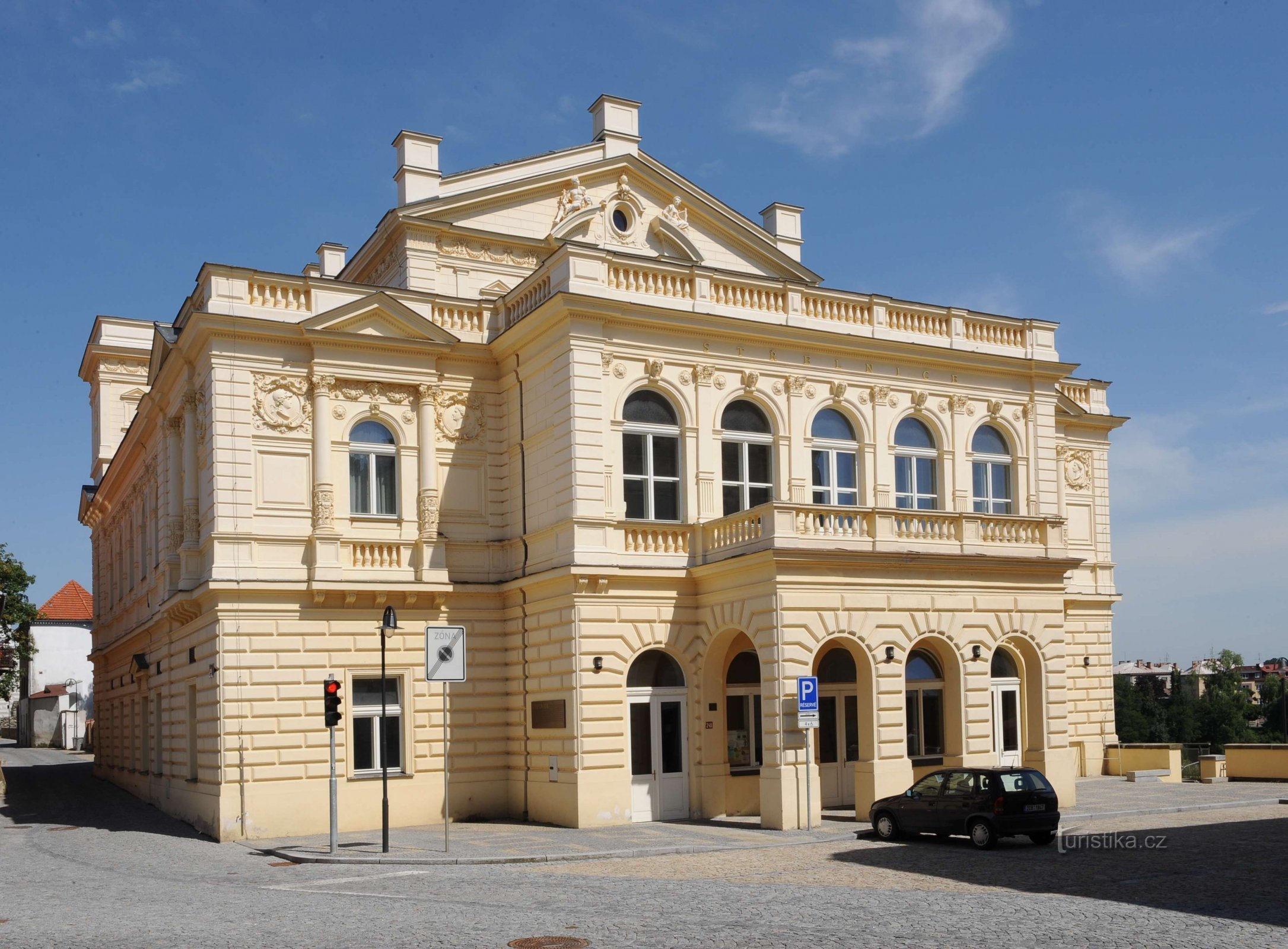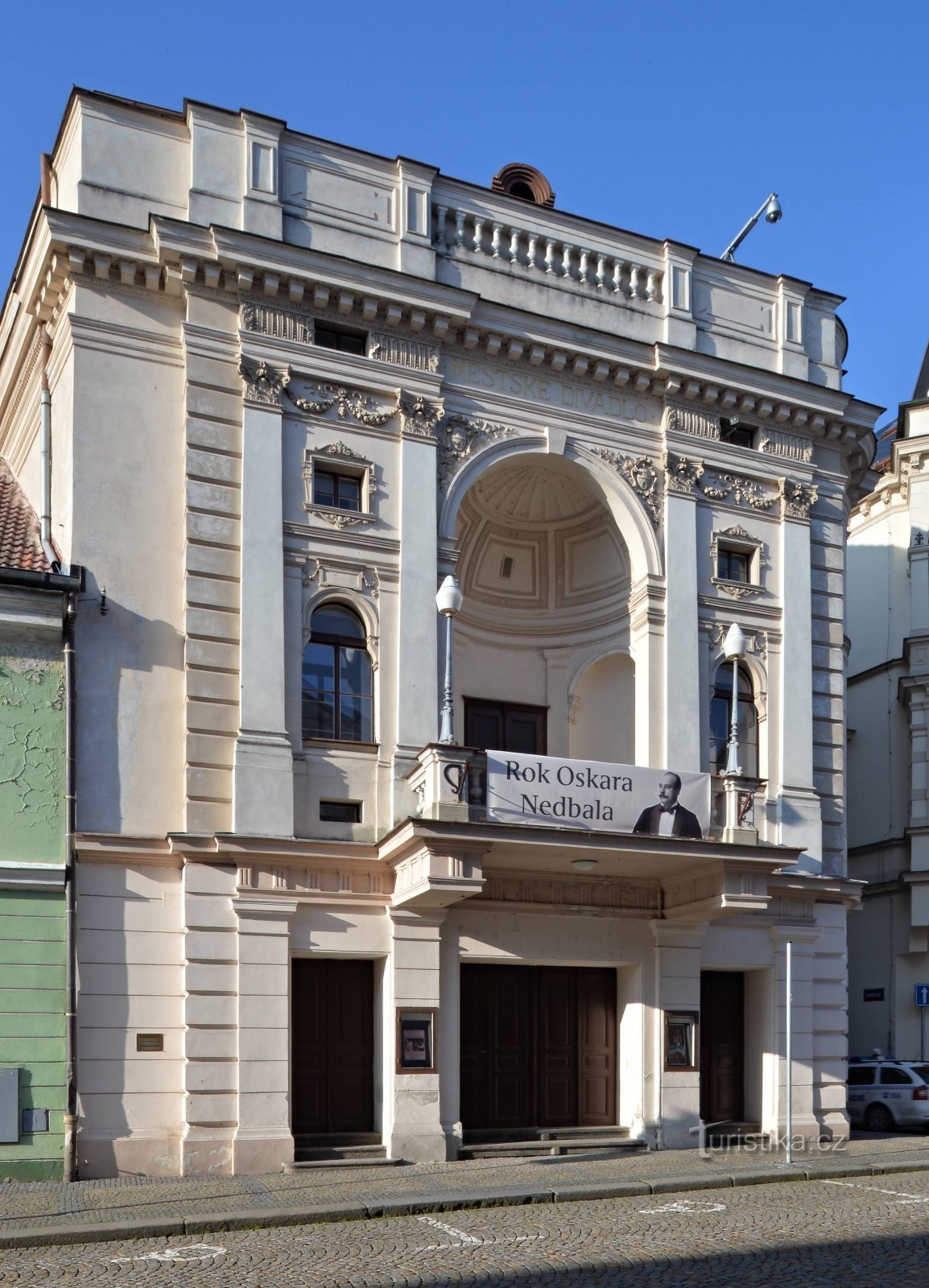 Prohlídku začneme v Palackého ulici, u Divadla Oskara Nedbala, které se skládá ze čtyř domů -…