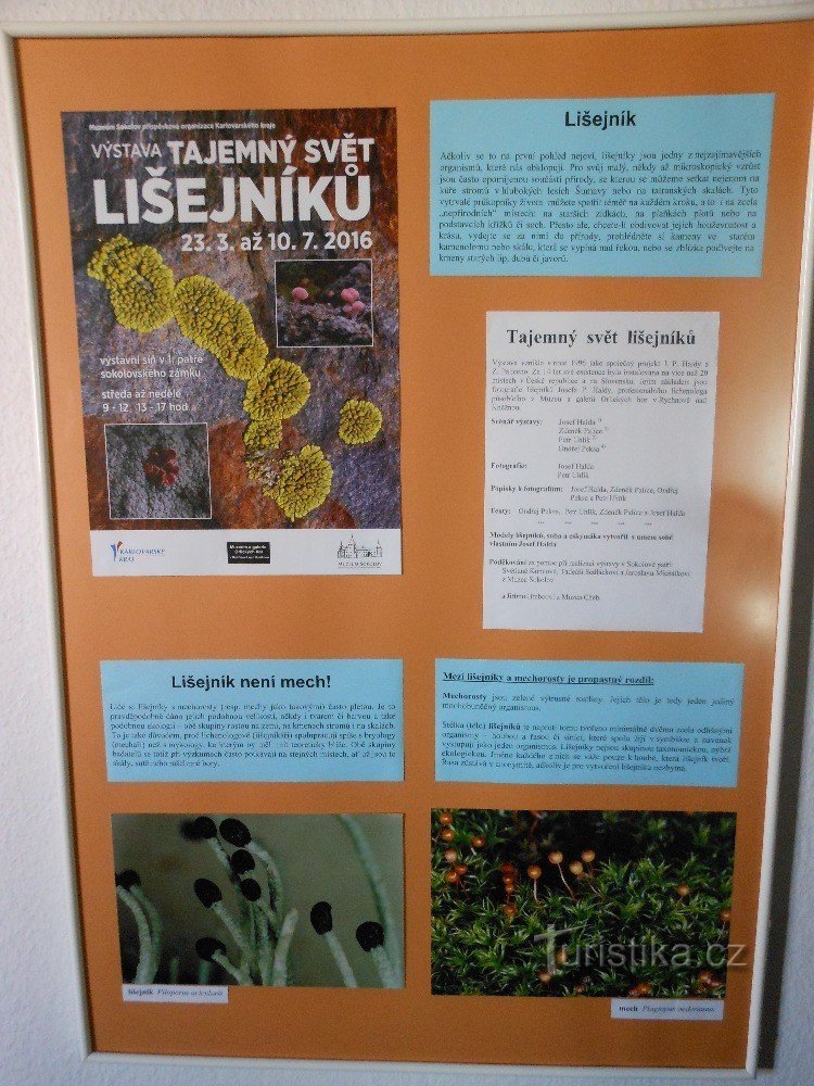 Autem do Muzea Sokolov, kde probíhá: Tajemný svět lišejníků Výstava přibližující svět lišejníků se bude konat v 1. patře sokolovského zámku ve dnech 23.3. - 10.7.2016. Otevřeno středa - neděle 9-12 a 13-17 hod. bez jídla a ubytování, nebylo potřeba... zajímavá výstava, kterou jsem navštívil v rámci Muzejní noci 10. června 2016