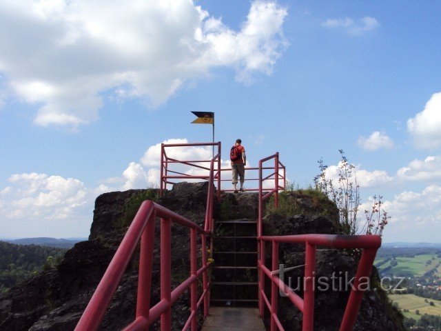 Jedna z velmi povedených tras, vedoucí od zříceniny středověkého hradu Tolštejn (první zmínky již z první poloviny 14.století, kdy byl významným a mocným opěvněním), přes Lesné při silnici vedoucí na Nový Bor, a po té už pomalé strmé stoupání až k samotnému nejvyššímu vrcholu Lužických hor. Odsud po té nádherný výhled do dalekého okolí.