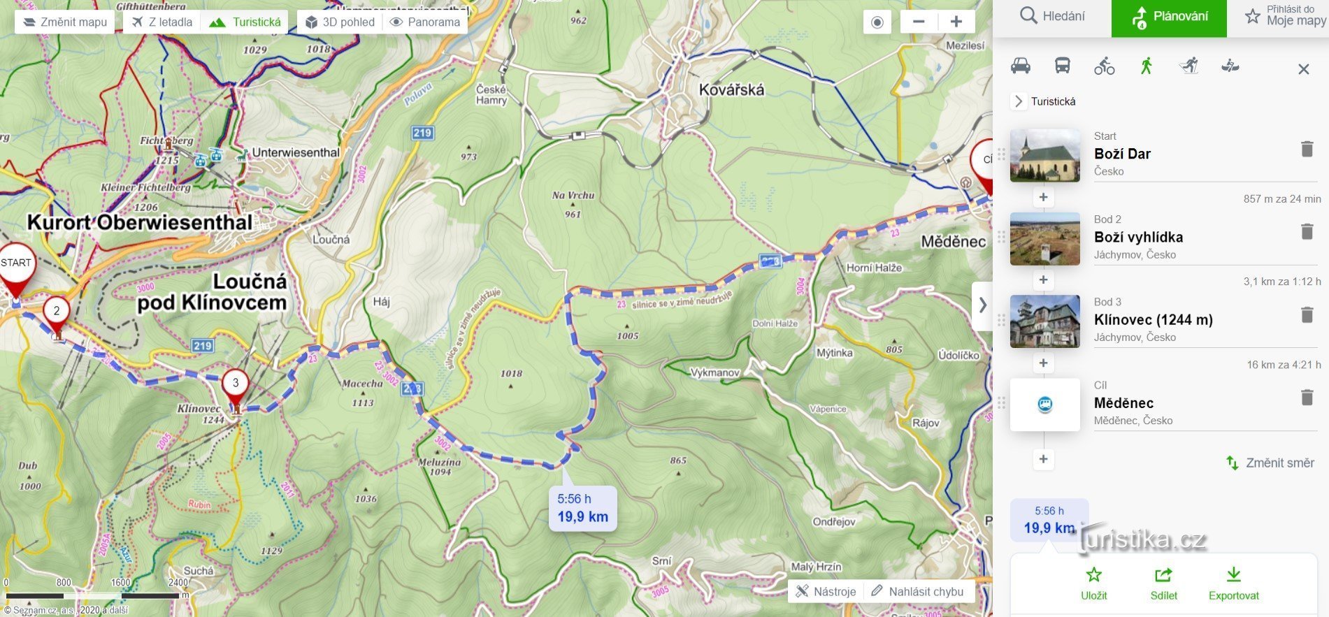 Trasa z Božího Daru do Měděnce má zhruba 20 km a vede stále po červeně značené turistické stezce.