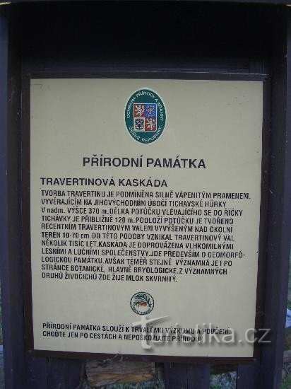 Travertinová kaskáda je přírodní památka, kterou najdeme v severozápadní části obce Tichá. Přírodní památka se rozkládá v údolí tvořeném řekou Tichávkou. Nad údolím se zvedá vrchol kopce Tichavská hůrka ( 544 m.n.m.). Jižním směrem od přírodní památky leží město Frenštát pod Radhoštěm a severním směrem městečko Hukvlady. Vydáme-li se západním směrem dorazíme do města Kopřivnice. Přírodní památka…