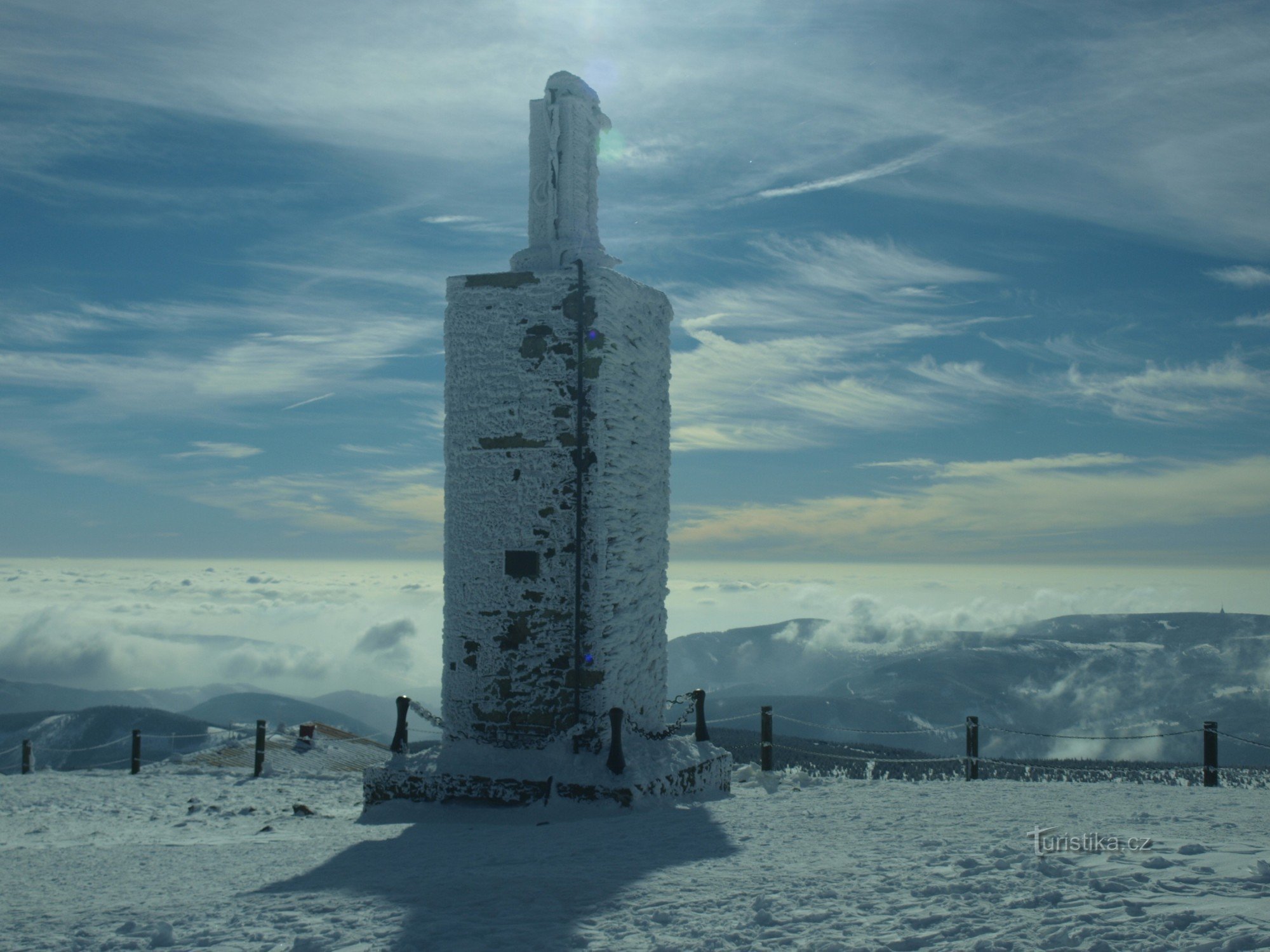 Sněžka před námi, Sněžka za námi, Sněžka vedle nás. Prostě tato hora nás při našem třídenním přechodu hřebene Krkonoš neustále doprovází a jako manekýna se natřásá s mlhavou sukýnkou kolem pasu. Užívá si, že je středem zájmů všech fotoaparátů. Neméně fotogenické „křoví“ této jiskrně mrazivé kráse dělají nekonečné sněhobílé pláně.
