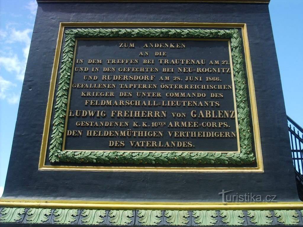 Sedemnásťmetrový Gablenzův památník je vo forme dutého liatinového obelisku z roku 1868. K pamätníku stojaceho na južnom okraji Trutnova vedie z mesta niekoľko značených parkových ciest. Výhľad z obelisku je len severovýchodným smerom (Krkonoše, Trutnov). V blízkosti obelisku sa nachádzajú aj suveníry v kiosku vedľa pomníku. Spája sa s bojom u Trutnova dňa 27. 6. 1866, ktorý bol krvavým…