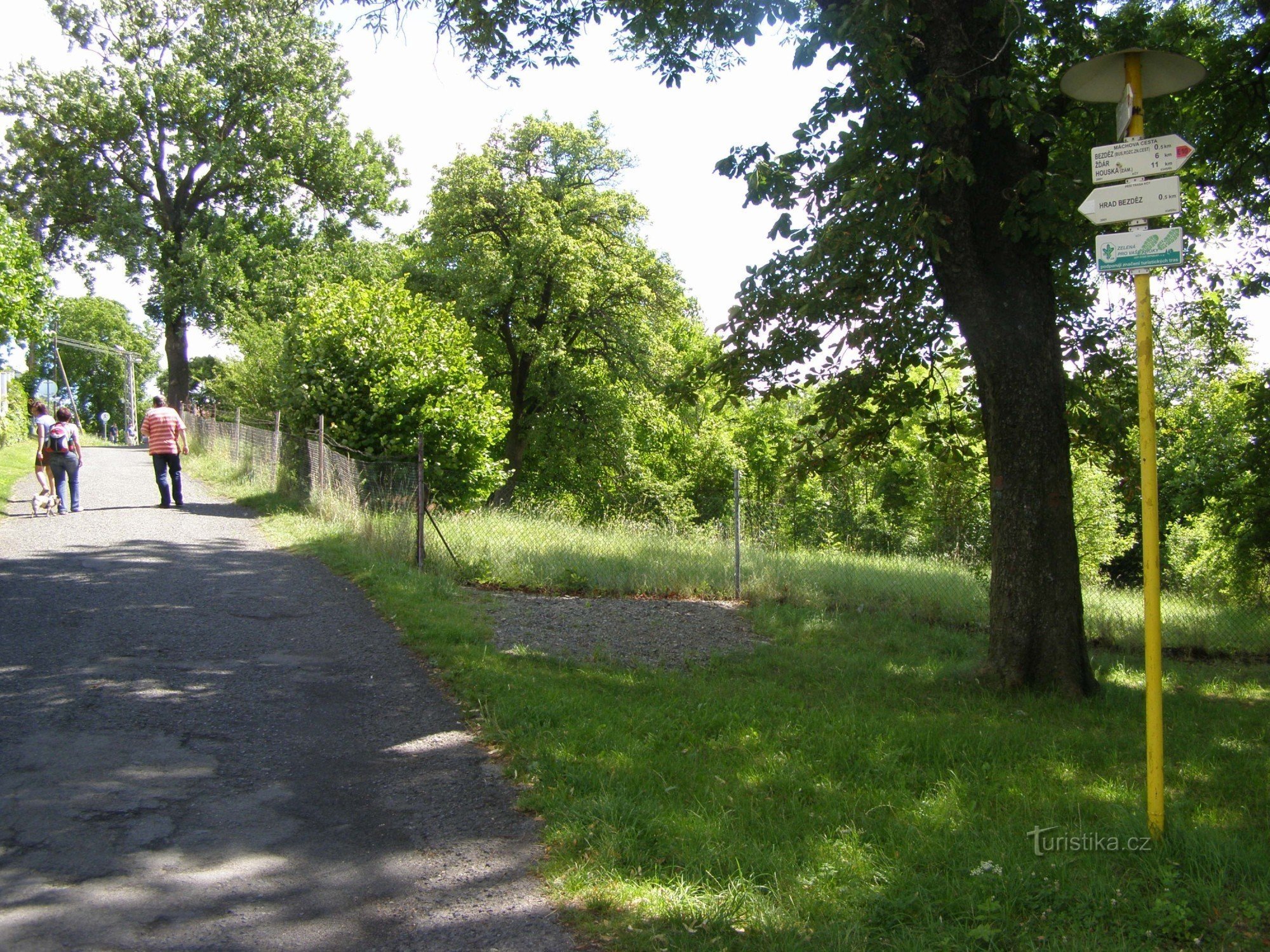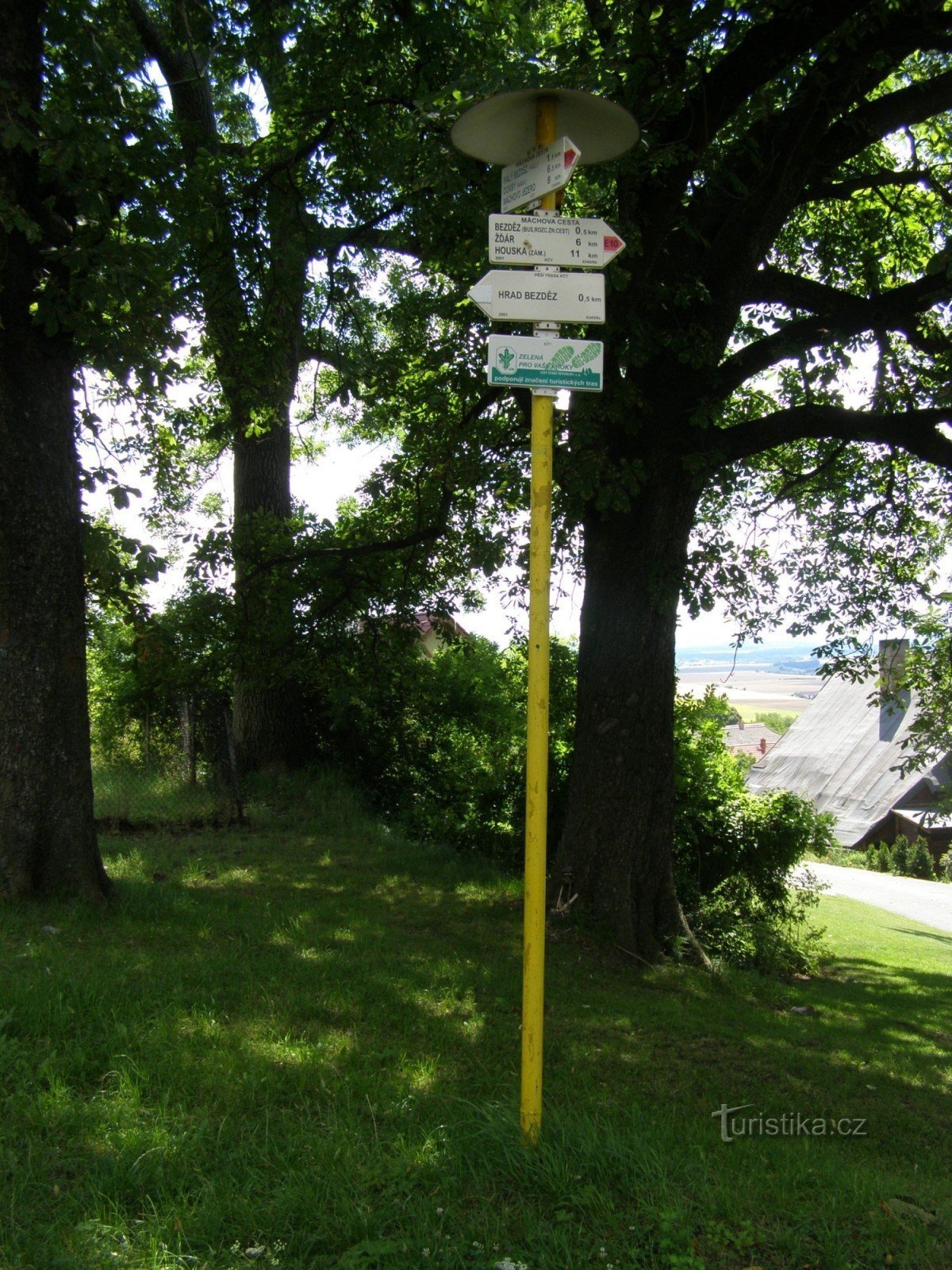 Turistický rozcestník, který se nachází pod hradem Bezděz, ukazuje turistům cestu po červené značce ve směru Houska, Žďár, Bezděz obec - Malý Bezděz hájovna, Doksy, Máchovo Jezero. Směr k hradu je značen samostatně.