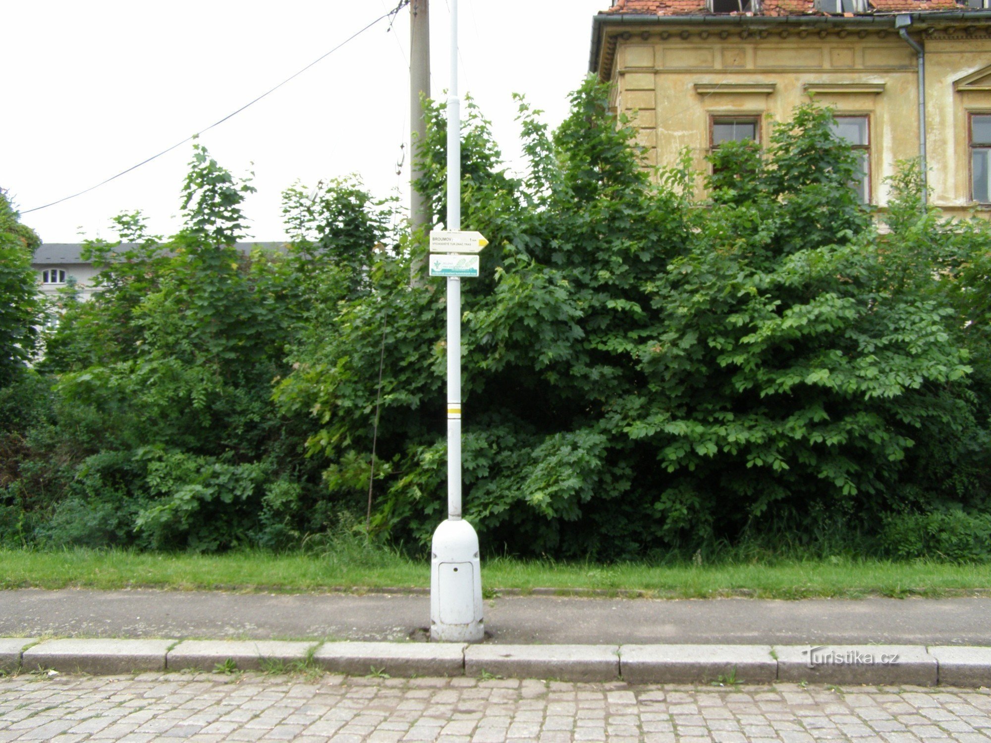 Turistický rozcestník, resp. směrník, který se nachází u železničního nádraží, ukazuje turistům cestu po žluté značce ve směru žst, nádraží - východiště turistických tras u náměstí.