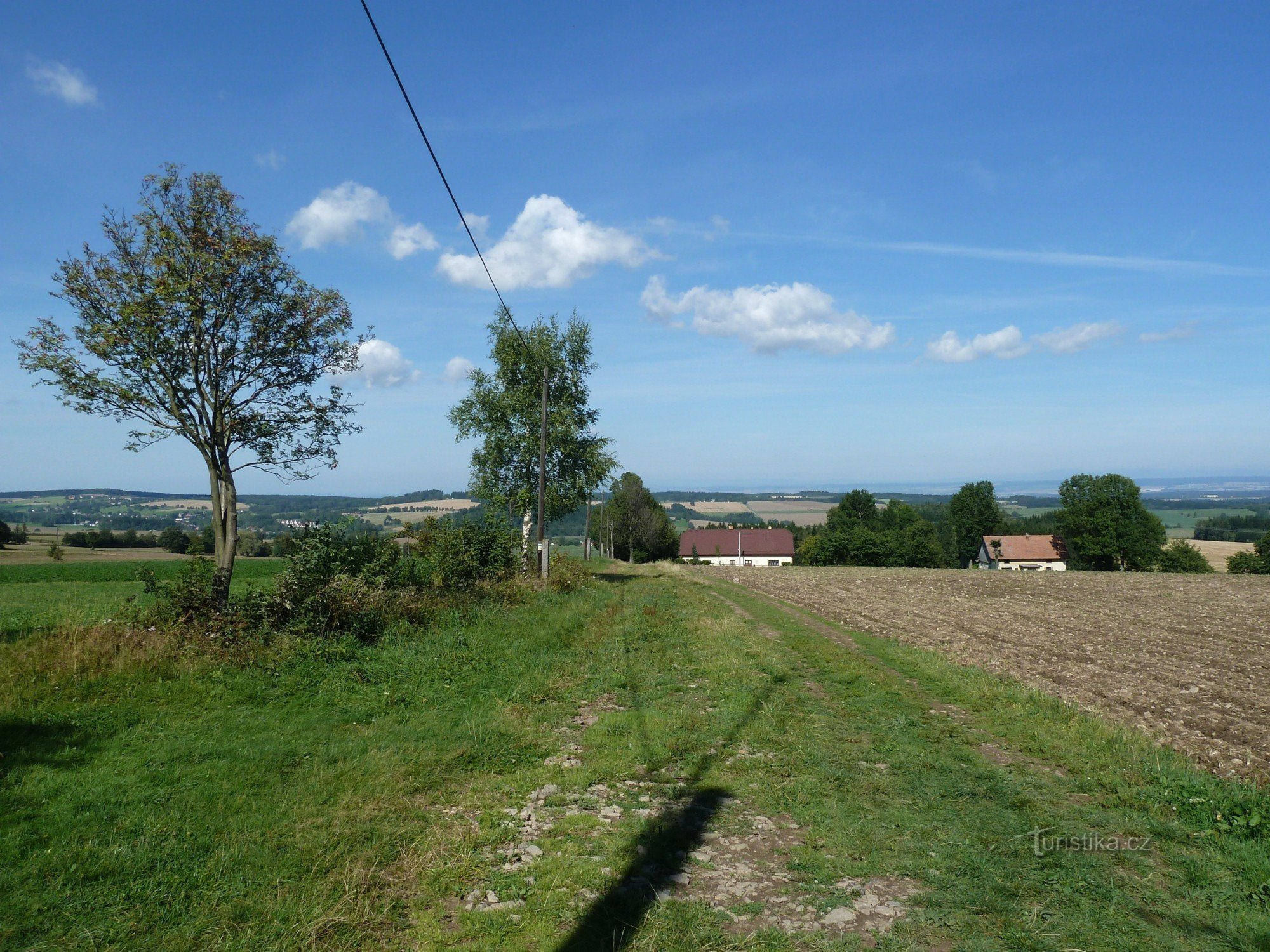 Všechny značky vedoucí od rozcestí (žlutá, zelená) vedou po loukách s výhledy do kraje.