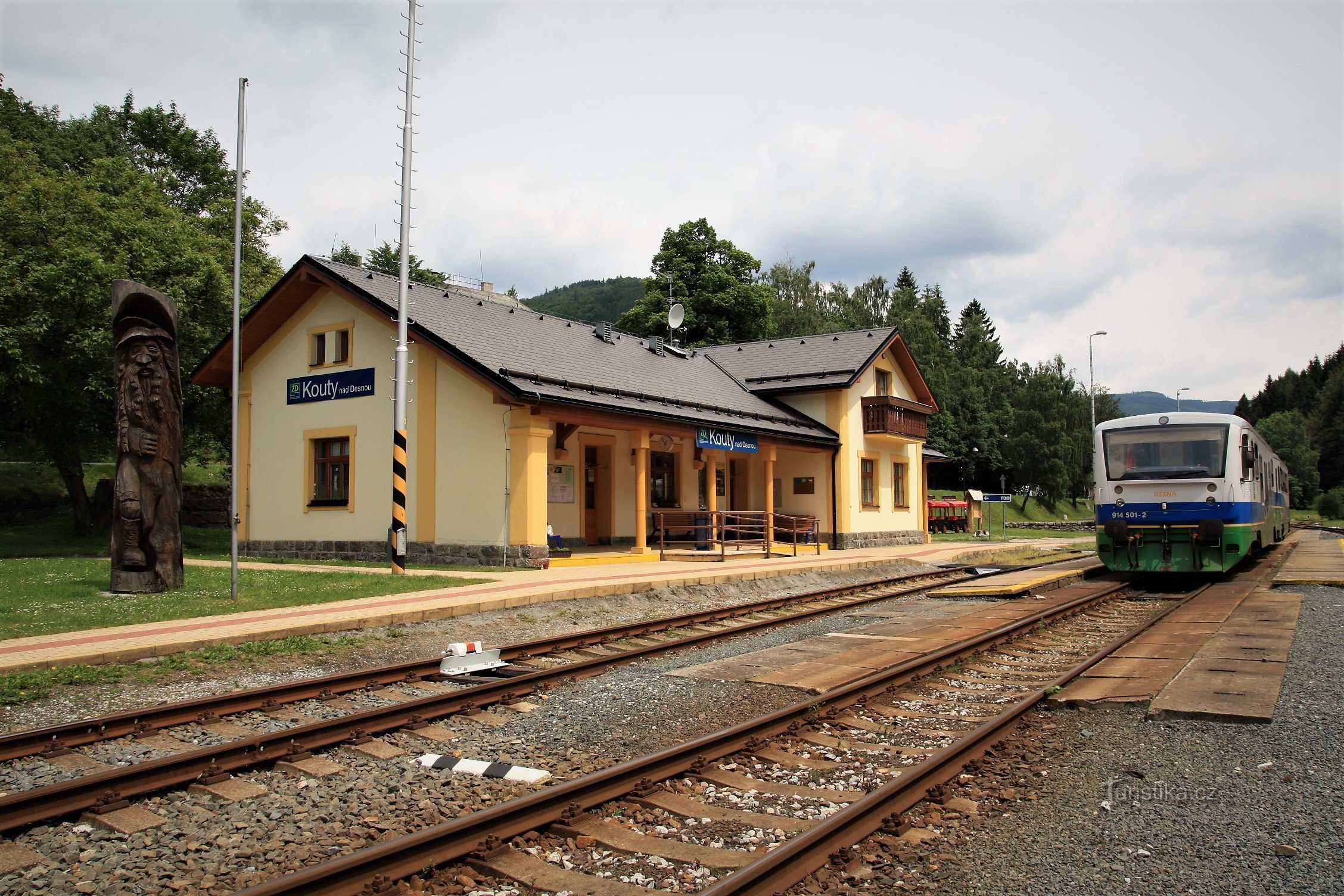 Směrovník turistického rozcestí se nachází před nádražní budovou. Prochází tudy modře značená turistická cesta. Ta vede jedním směrem na Přemyslov, vrchol Tři kameny, Nové Losiny a Františkov a končí v Branné. Opačným směrem pak pokračuje přes Ski areál, stoupá údolím Desné k dolní nádrži Dlouhé stráně a Divokým dolem vystoupá na vrcholový hřeben a končí u rozhledny na vrcholu Pradědu.Turistické…