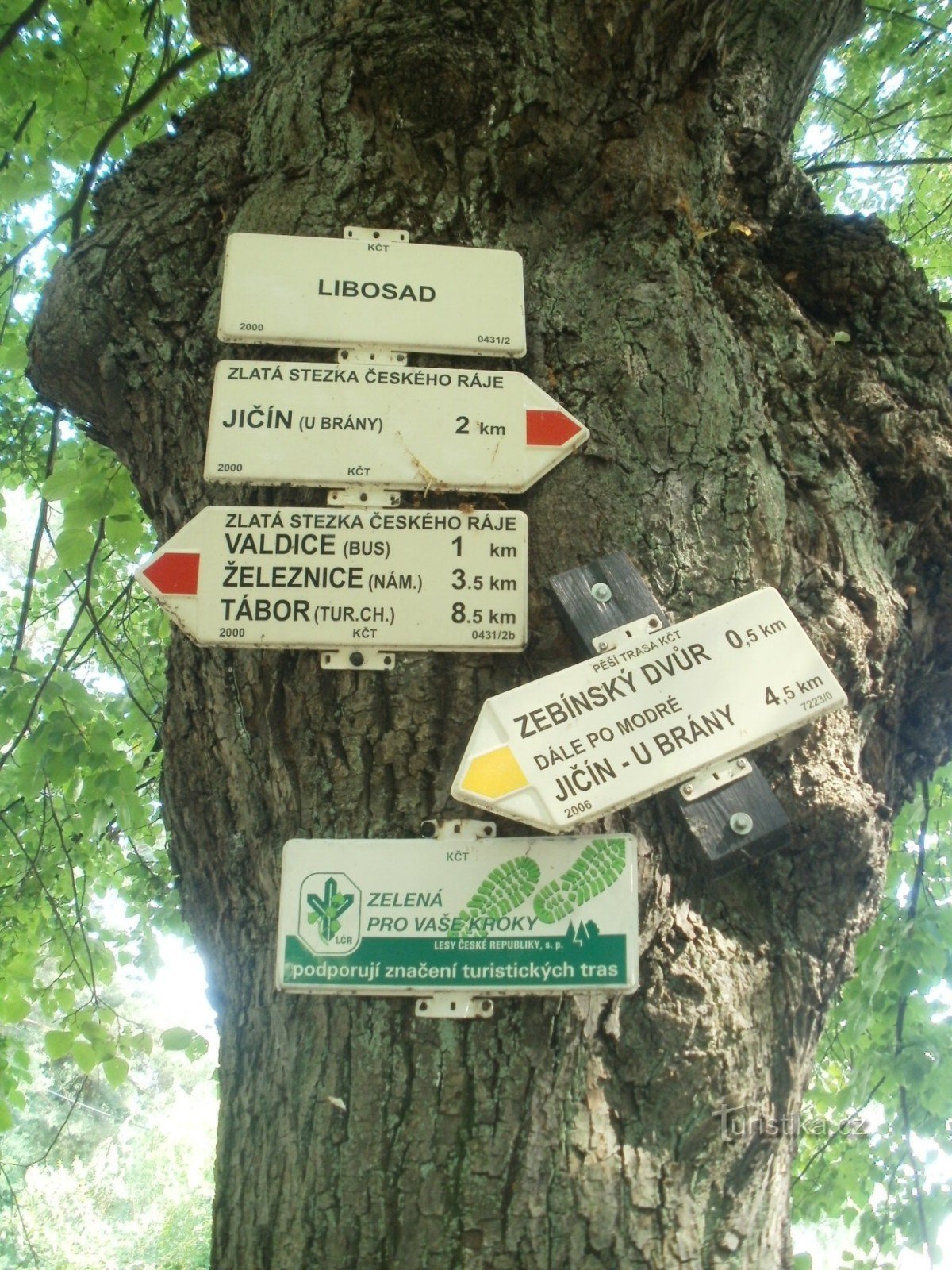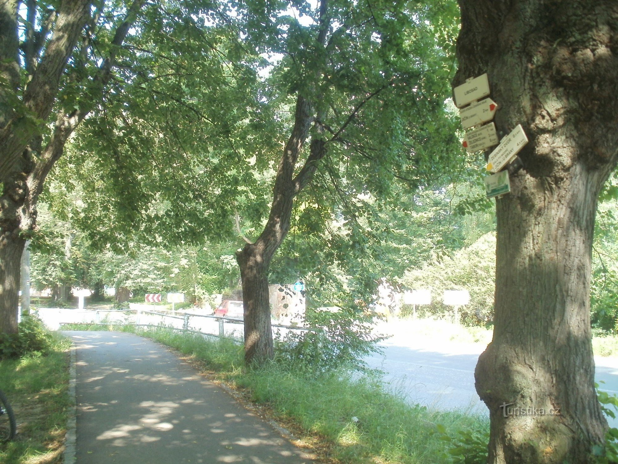 Turistický rozcestník, který se nachází na konci Lipové aleje u Libosadu, ukazuje turistům cestu do dvou směrů. Po značce červené ve směru Jičín - Valdice, Železnice, Tábor a po krátkém úseku žlutí značky k rozcestí Pod Zebínem.