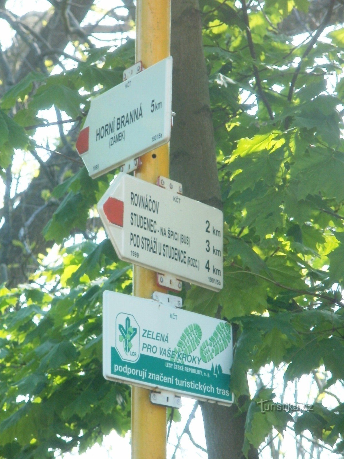 Turistický rozcestník, který se nachází u železničního nádraží v Martinicích v Krkonoších, ukazuje turistům cestu po červené značce ve směru Nová Paka, Levínská Olešnice, Pod Stráží - Horní Branná. V některých mapách je úsek mezi Horní Brannou a Pod Stráží značen modře.