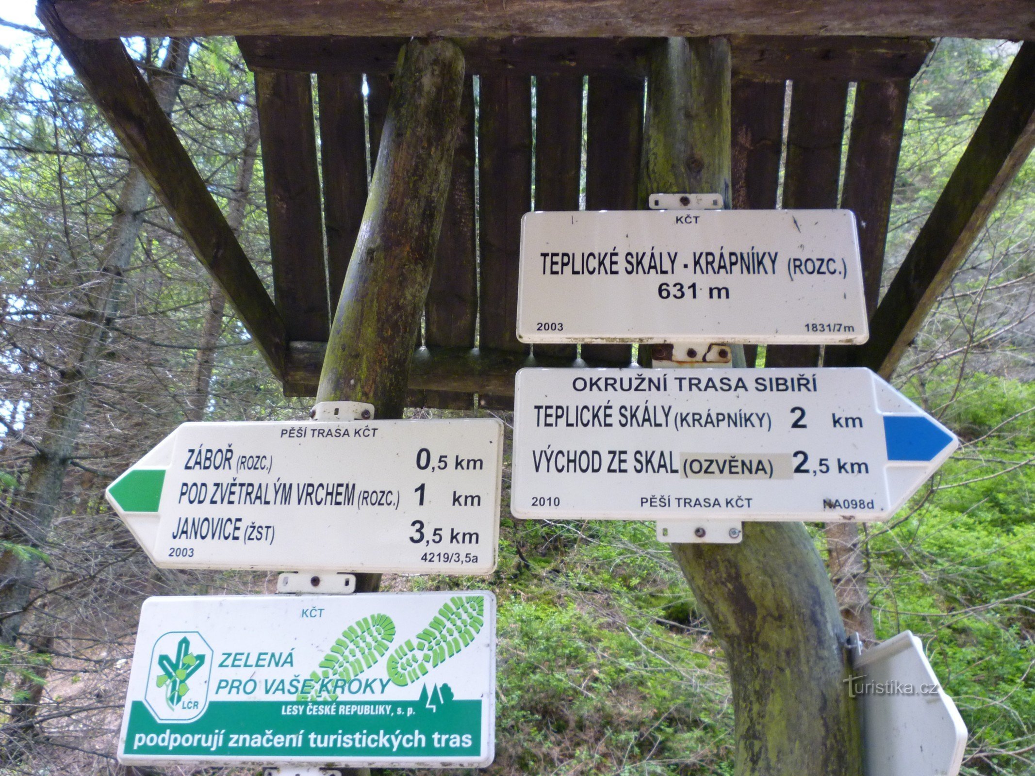 turistické rozcestí Teplické skály - Krápníky