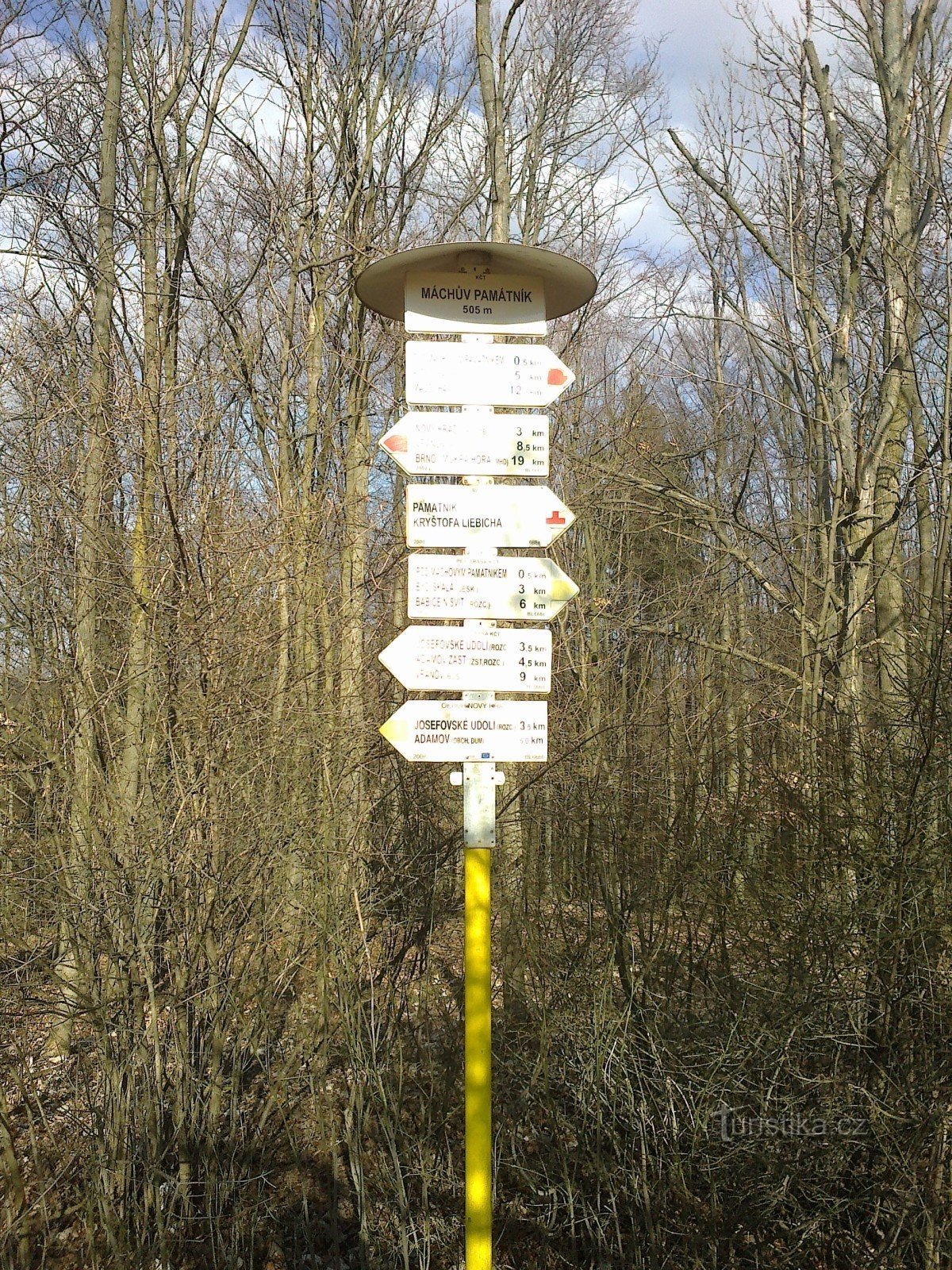 Je to rozcestí na žluté a červené turistické značce.