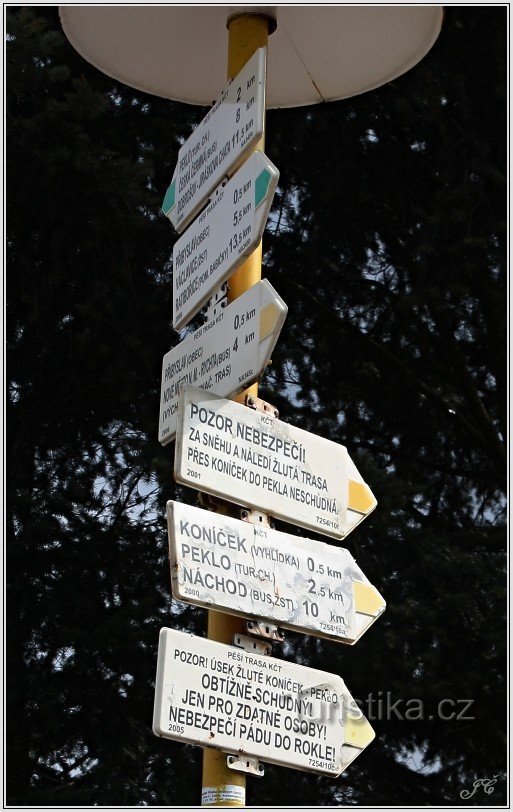 žlutá JV směrem - Koníček (vyhlídka), Peklo, Ostrovy, Bražec, Náchod
