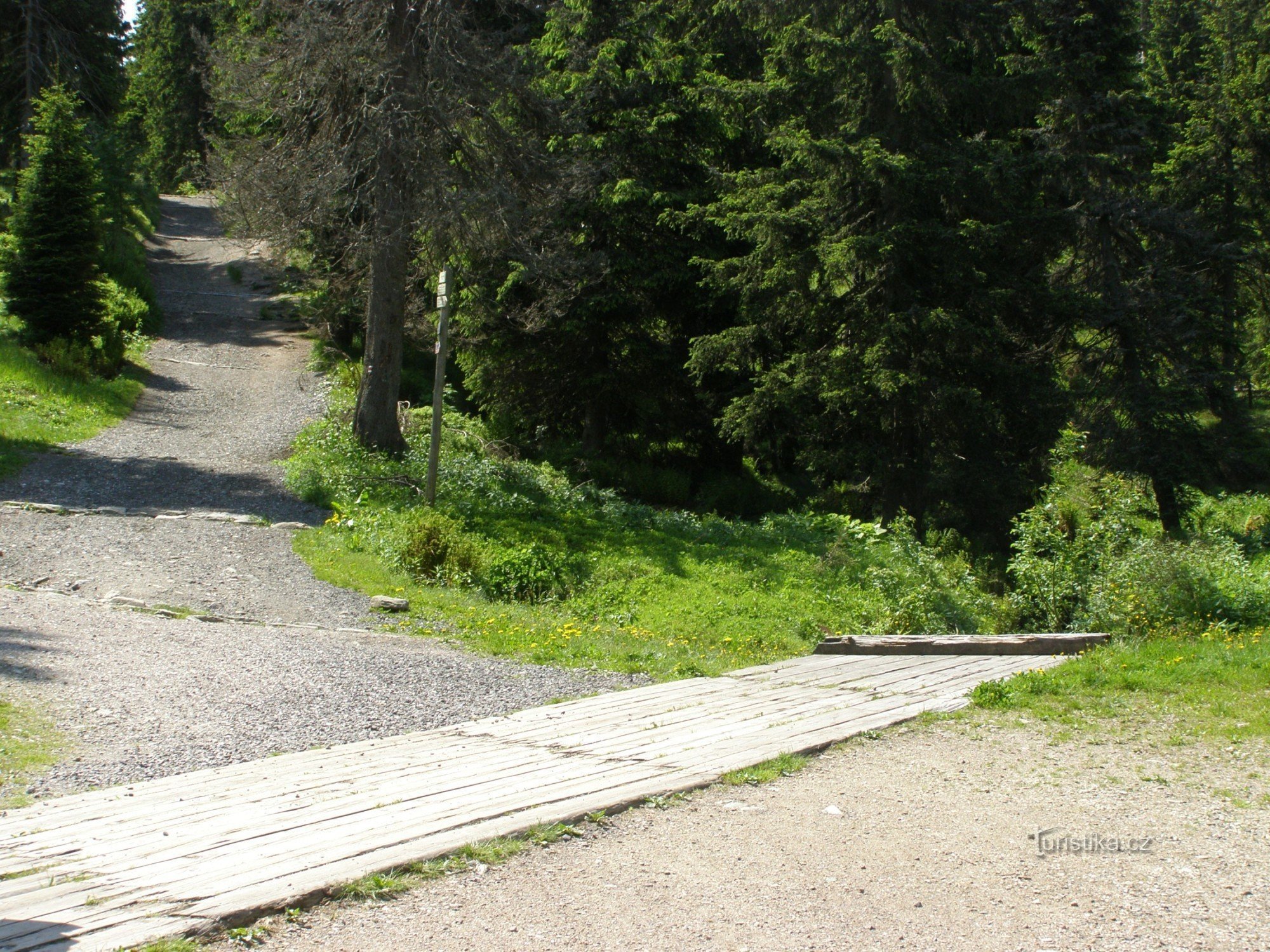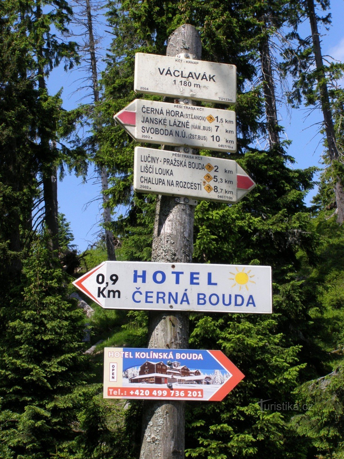 Turistický rozcestník, který se nachází u Javořího dolu v oblasti zvané Václavák, ukazuje turistům cestu po červené značce ve směru Chalupa na Rozcestí, Liščí louka, Lesní bouda, rozc. Pod Lesní boudou, Hrnčířské Boudy, Pražská bouda, Kolínská bouda, rozcestí Pod Kolínskou boudou - hotel Černá Bouda, Černá Hora, Svoboda nad Úpou.