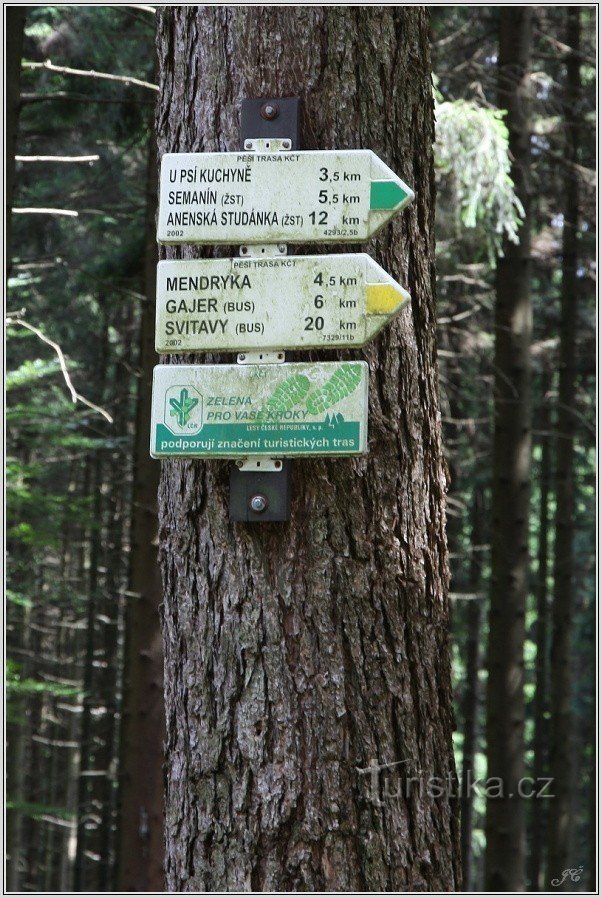 zelená J směrem - Psí kuchyně, Semanín, Hvězda, Anenská Studánka