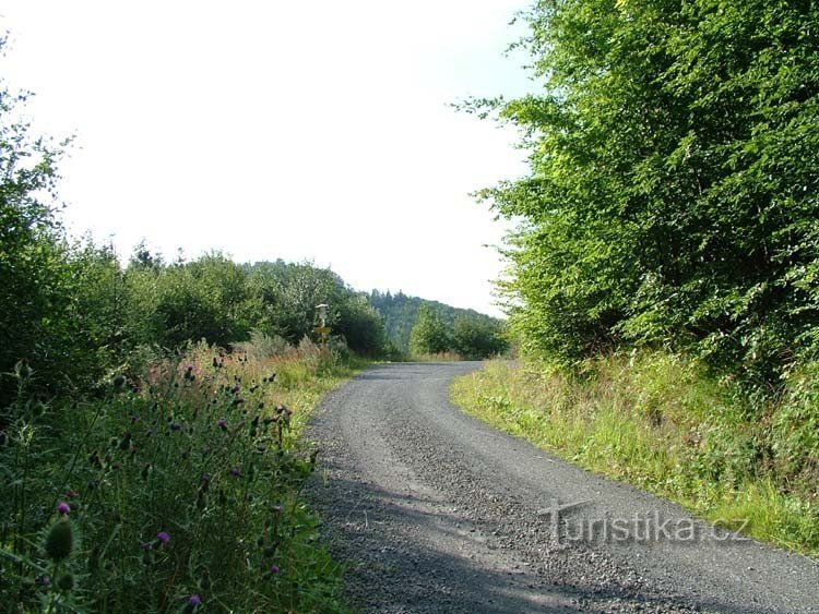 U Malého Kozince je rozcestí modré a zelené turistické značky a nachází se jižním směrem od turistické chaty Kozinec. Rozcestí je v sedle mezi vrcholky severně Malý Kozinec ( 653 m.n.m.) a jižně Žďár ( 741 m.n.m.) a z tohoto sedla je pěkný výhled na oba vrcholky. Rozcestník je umístěn u křižovatky lesních cest a v jeho blízkosti je vybudované zastřešené odpočinkové místo. Po modré značce dojdeme…