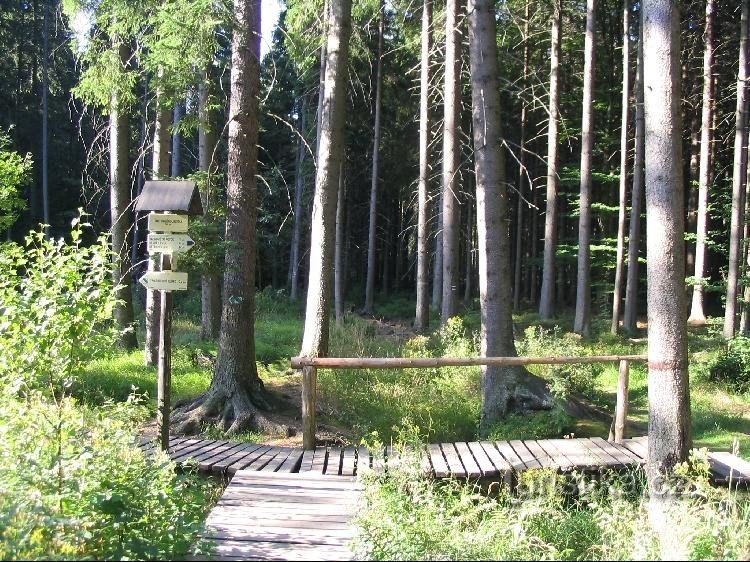 turistické rozcestí - Mechové jezírko