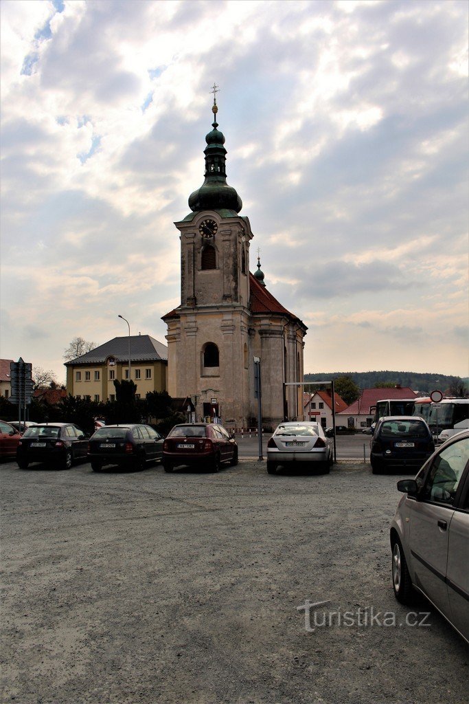 Kostel se nachází v jižní části Václavského náměstí. První, co zaujme, je průčelí směrem k severu, což je u katolických kostelů neobvyklé. Kostel se začal stavět v roce 1767 a byl dokončený v roce 1795. Stavbu financoval Alois z Lichtenštejna. Pozdně barokní stavba má loď na obdélníkovém půdorysu, na kterou navazuje pravoúhlý presbytář se sakristií. Hranolová věž v průčelí je jednopatrová s…