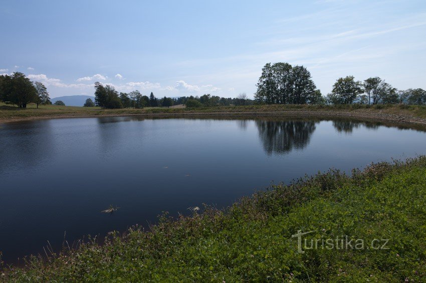 Že leckdy i zcela účelová stavba může působit malebně dokazuje zasněžovací rybníček v Hynčicích pod Sušinou. Postavili si ho tu původně pro nalepšení stavu vody při zasněžování zdejšího rozsáhlého areálu. (Letos se moc neuplatnil). Jinak hlavní zasněžovací bazén najdeme u hospody v centru areálu. Rybníček má ovšem celoroční využití, jsou v něm nasazeny nějaké rybičky, tudíž za úplatu se tu dá…