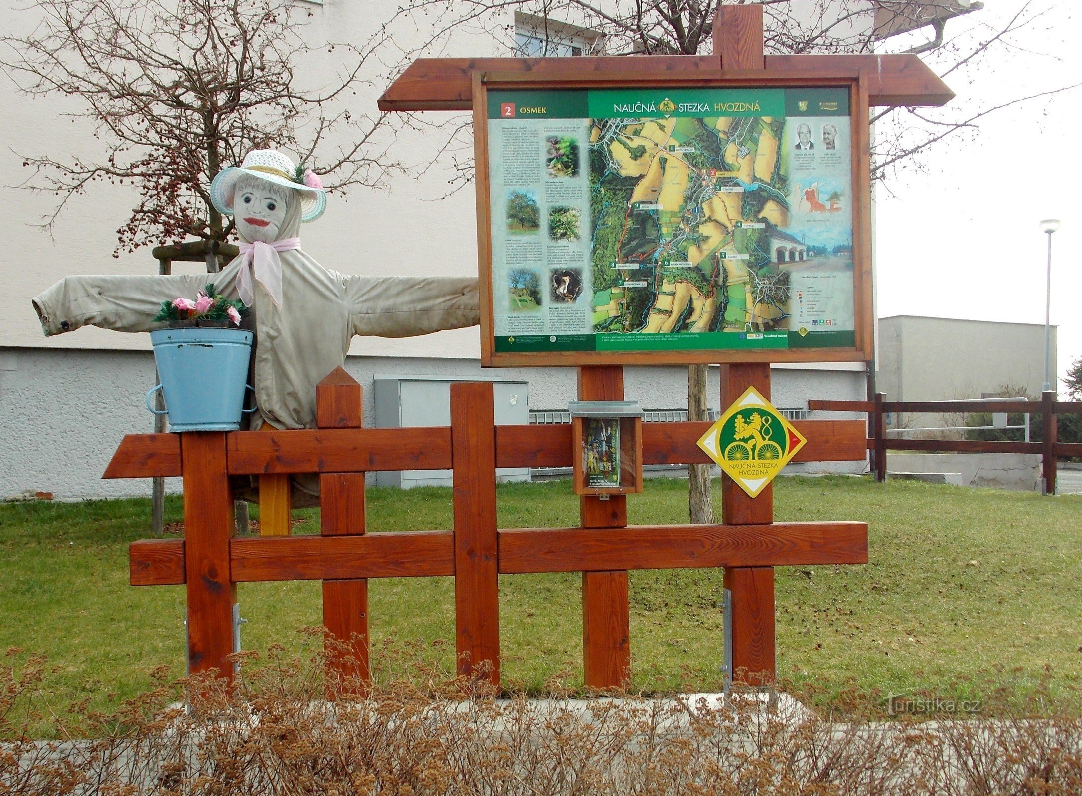 Obec Hvozdná, kterou jsme procházeli, se nachází 12 km SV od krajského města Zlína. Žije zde 1140 obyvytel., v okolí stojí za návštěvu dva rozsáhlé rybníky, sloužící k rekreaci i rybolovu. Spodní rybník se nachází pod hornímm koncem obce - v části s názvem Osmek. Ve středu obce jsme viděli dětské hřiště, školu, školku, hasičskou zbrojnici, kostel, Všech svatých, saunu, Ochotnické divadlo,…