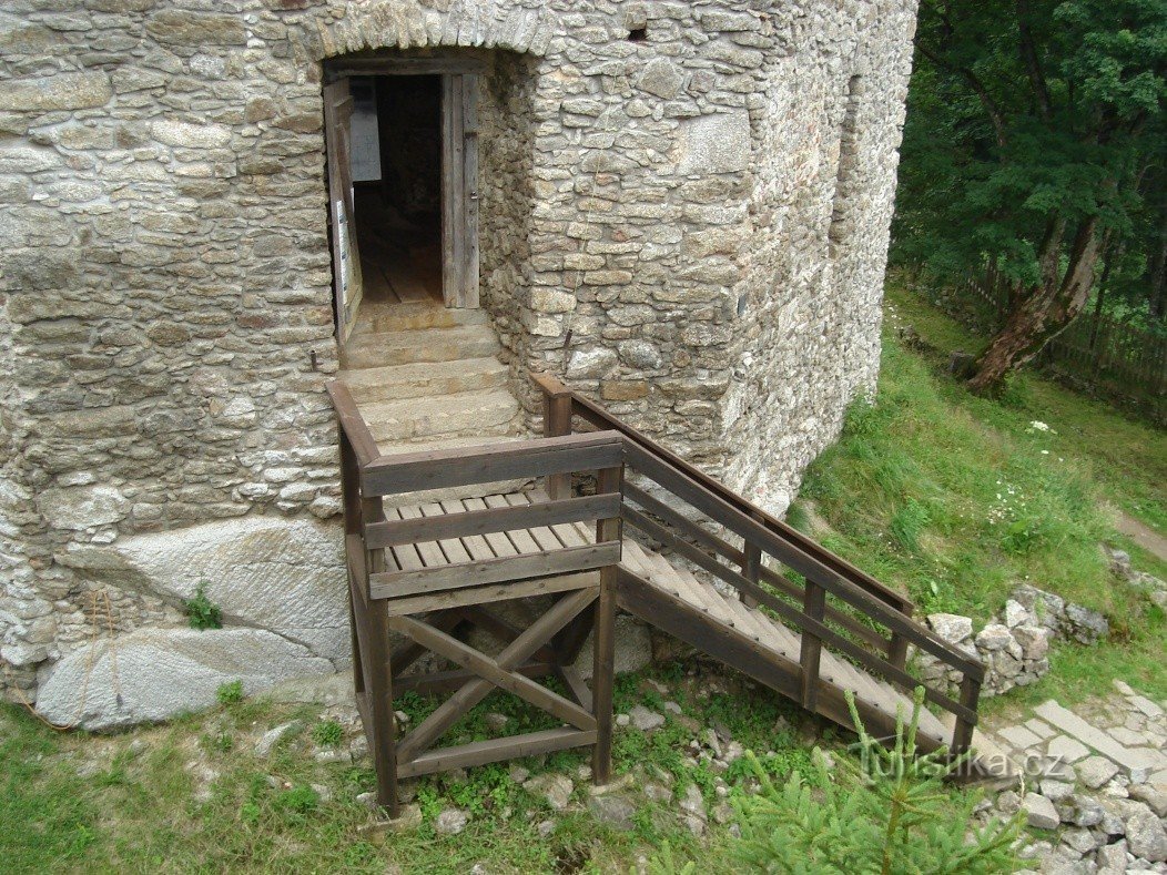 Vypravíte-li se ke zřícenině hradu autem, můžete využít bezplatného parkoviště v osadě Svatý Tomáš, kam přijedete od Přední Výtoně. Z parkoviště k hradu vystoupáte po kamenité cestě dlouhé necelých půl kilometru. Povede Vás turistické značení. Na horských kolech se dá vyjet až k samotné zřícenině.