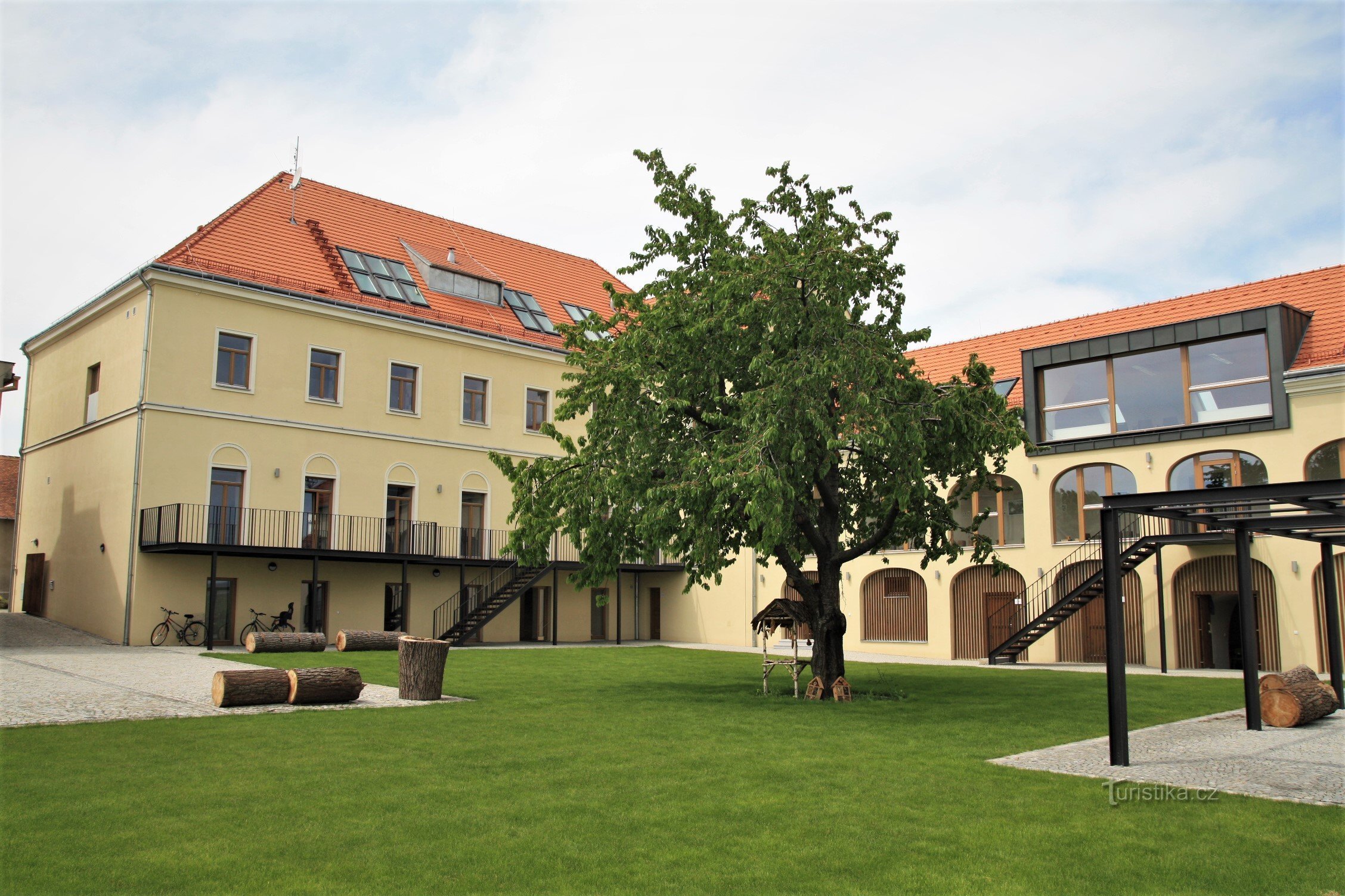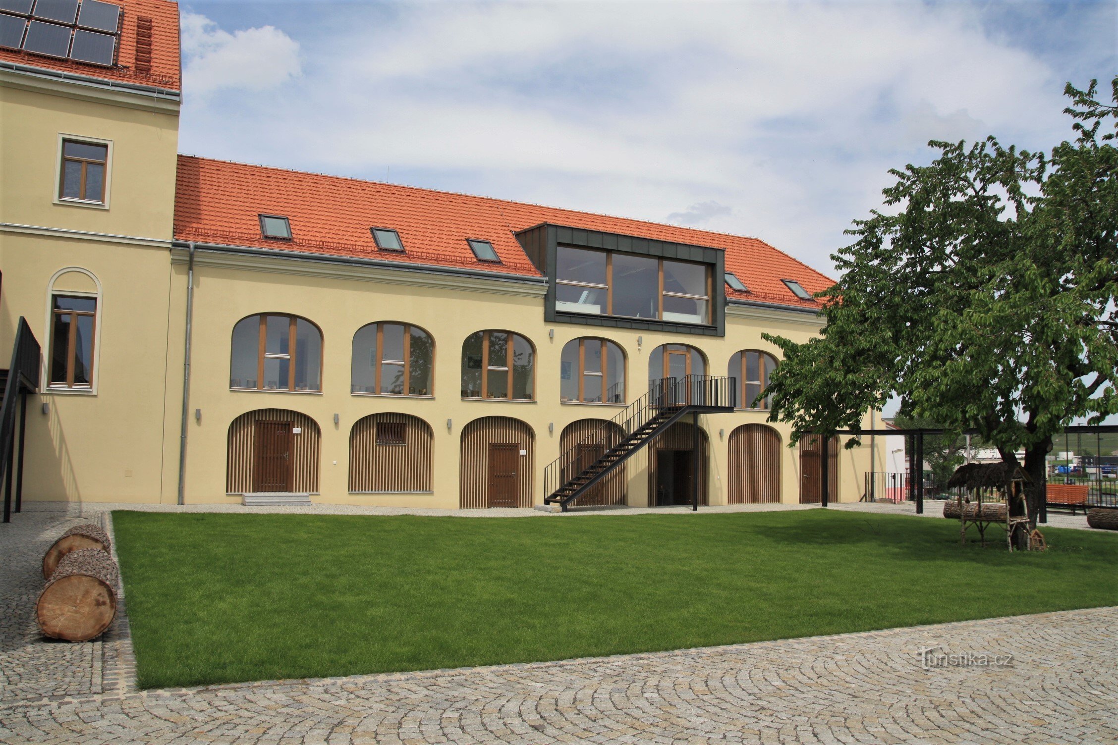 Nachází se v hospodářské části města u křižovatky ulic Nádražní a Hodonínské. Pravděpodobně už ve 14. stol zde byla vybudována tvrz, jako středisko žďárských cisterciáků. Ta je však písemně potvrzena až roku 1631. Podle některých pramenů byla pozdně renesanční tvrz vystavěna až v 17. století za Žampachů z Potštejna. Roku 1762 získali Velké Pavlovice Habsburkové a za nich František I. Štěpán…