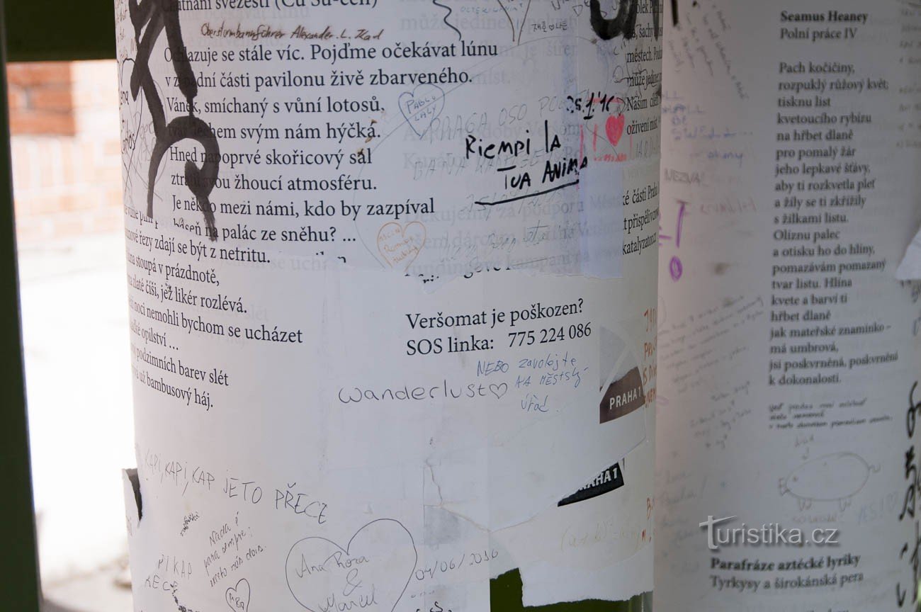 Aby si kolemjdoucí navodili tu správnou náladu, mohou si ti, co sem míří od jihu, tedy například od mostu Legií nebo od Petřínské lanovky, zkusmo přečíst pár veršů, které jim ten správný pocit navodí.