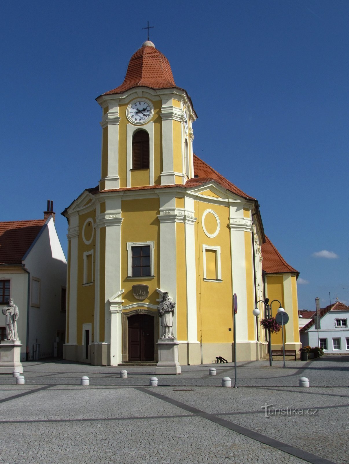 Bartolomějské náměstí patří k nejstarším částím Veselí nad Moravou, rozkládá se na jednom z ostrovů řeky Moravy a má přibližně čtvercový půdorys os tranách 60 x 60 m. Na východní straně se nachází jeho největší dominanta – chrám sv.Bartoloměje s fasádou žluťoučkou jak čerstvě vylíhlé kuřátko. Barokní sakrální stavba od svého vzniku roce 1731 sloužila jako veselský farní kostel. Sochy sv.Jana…