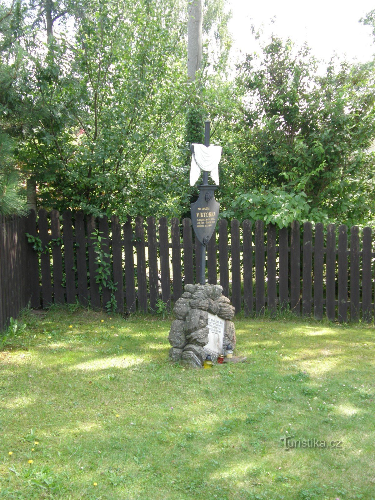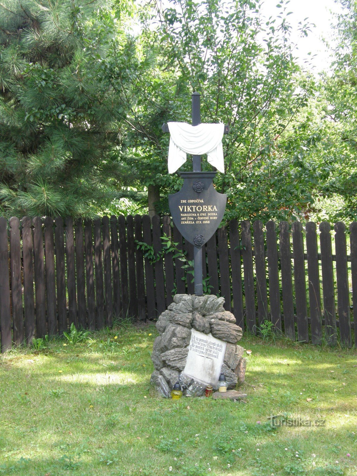 Na kovaném kříži je deska s nápisem: Zde odpočívá Viktorka, narozená r. 1792, dcera…