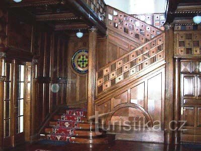 Prostorná hala v přízemí s původním zdobným…