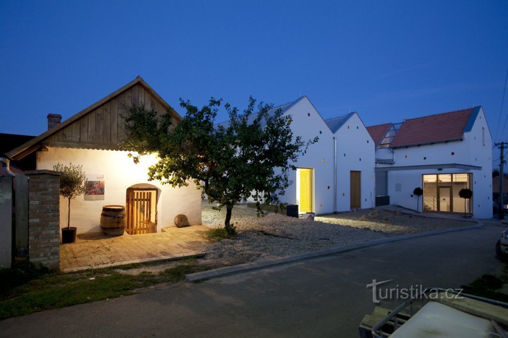 „Tak moderní a originální architektura dorazila i na konzervativní Slovácko,“ říkám si, když stojím před vinařstvím Krásná hora ve Starém Poddvorově. Architektonický návrh od studia Létající inženýři ctí tradiční architekturu moravského venkova i krajinu okolí Starého Podvorova, přesto se jedná o moderní, živou a nadčasovou stavbu.