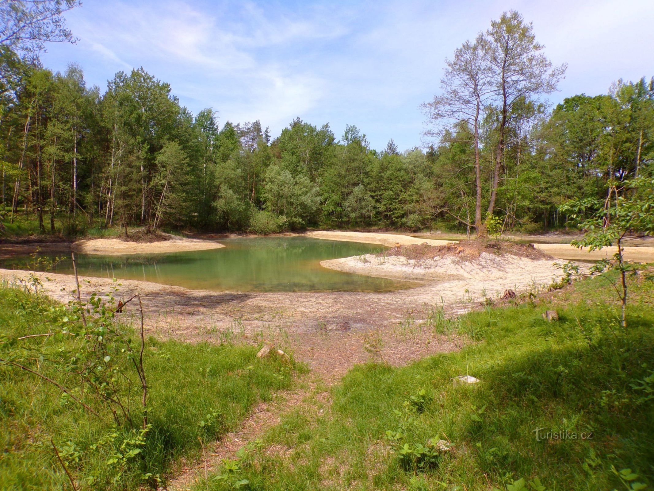 V těchto místech původně bývala pole a pastviny, což můžeme zjistit nahlédnutím do indikační skici stabilního katastru z roku 1840 od adjunkta 2. třídy Quido Johanna Zelleria a geometra 4. třídy Antona Calvase (viz https://ags.cuzk.cz/archiv/openmap.html?typ=skicic&idrastru=HRA050018400). Později se zde delší dobu těžily štěrkopísky (viz https://ags.cuzk.cz/archiv/openmap.html?typ=topo1952…