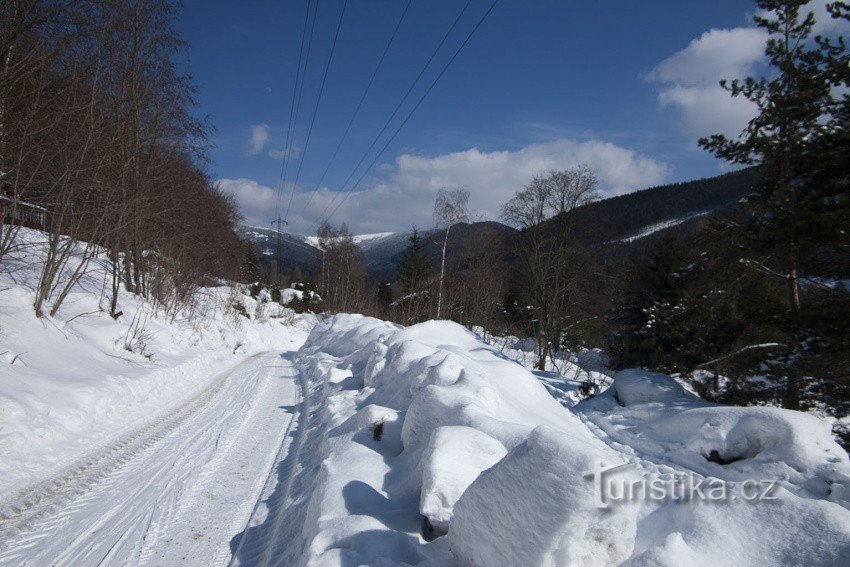Vodní cesta je jednou z možných výstupových tras pro běžkaře z Koutů na Červenohorské sedlo (samozřejmě i sjezdových). Jako jedna z mála tras v Jeseníkách je vyznačena speciální značkou Kčt tedy jako lyžařská trasa. Ta se od běžného značení vyznačuje tím, že postranní pruhy kolem vedoucí barvy nejsou bílé, ale oranžové, jinak se zvlášť neliší od běžné turistické značky, rozměrově je stejná, proto…