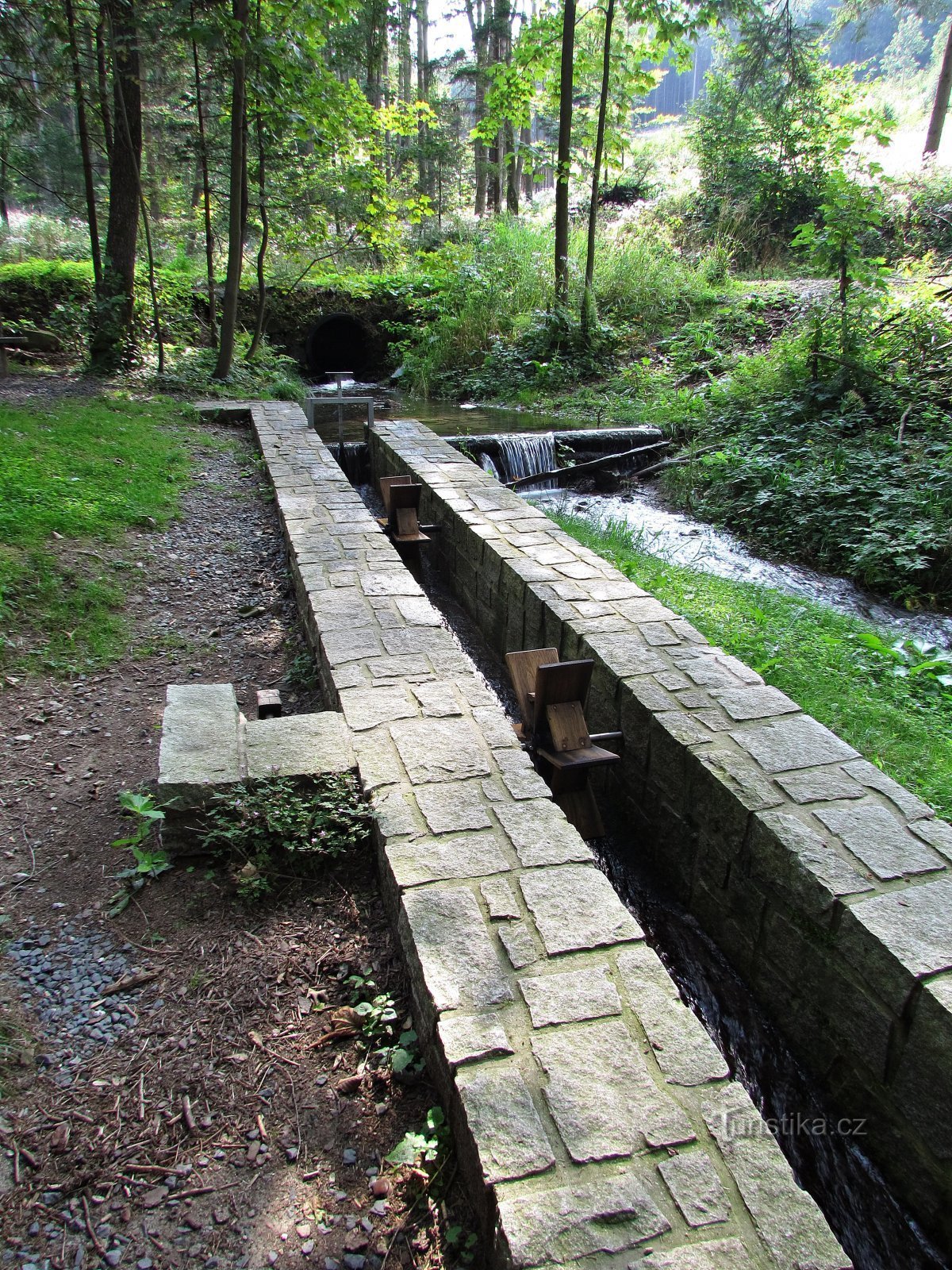 Na malý umělý náhon s několika vodními mlýnky na potoce narazíme v údolí mezi Bělákem a hlavní oblastí Čertových kamenů. Byl zbudován jako názorná ukázka síly vody, která byla v minulosti dole v údolí řeky Bělé využívána jako pohon k různým mlýnům na obilí, hamrům atd... Tuhle atrakci ocení hlavně děti, neboť v sezóně se dá stavidlo povytáhnout a tekoucí H2O na chvíli roztočí lopatky všech…