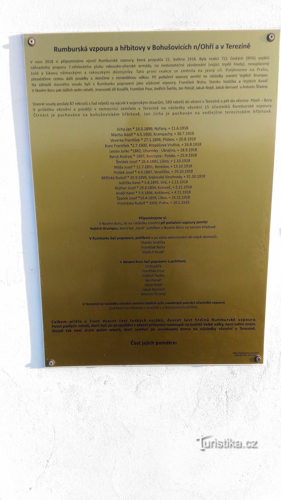 Výročí 100 let od založení Československa bylo podnětem k obnově památek, které připomínají oběti I. světové války. Při té příležitosti byl také upraven a zpřístupněn zapomenutý a velice zarostlý vojenský hřbitov na okraji Bohušovic nad Ohří. Zachovala se zde centrální mohyla a pár náhrobních kamenů 14 vojáků účastníků Rumburské vzpoury. Rumburská vzpoura 21.5.1918 byla reakcí českých vojáků na…
