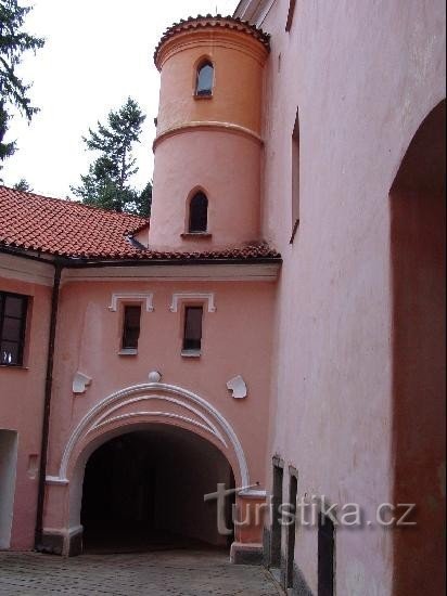 Původní vodní tvrz, vybudovanou kolem roku 1350, nechal po roce 1600 přestavět Jan z Vrtby na zámek.…