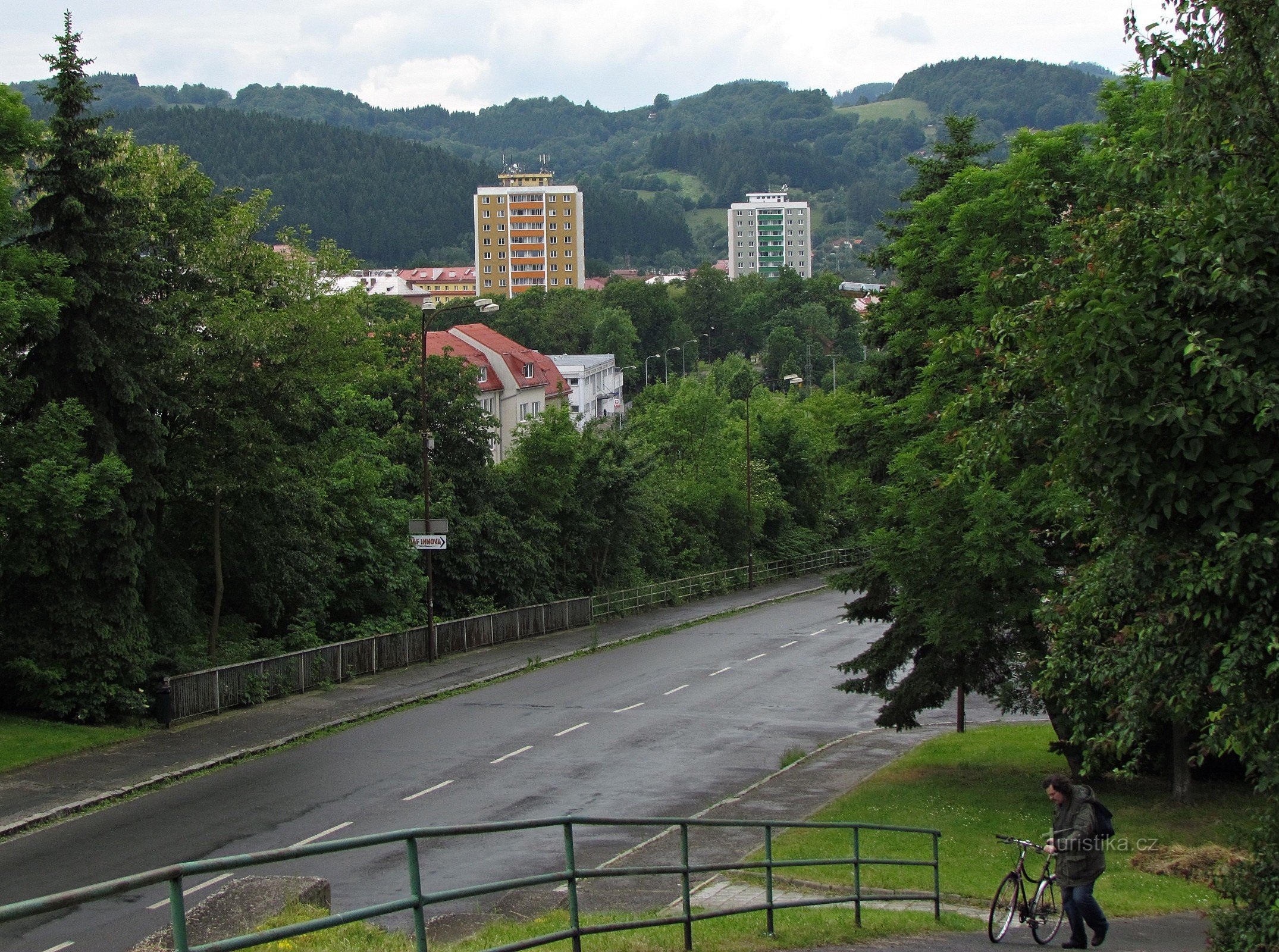 Tato hlavní komunikace klesá od vsetínského Horního náměstí ke kruhovému objezdu a k mostu přes řeku Bečvu a je hlavně po pravé straně lemována mnoha zajímavými budovami. Na to, abychom si je mohli v klidu vychutnat, je nutno udělat tuto procházku pěšky. Pod budovou Maštalisek se o kus níž nachází po levé straně na srázu nad Bečvou poslední dům, kde své mládí prožili známí umělci bratři…