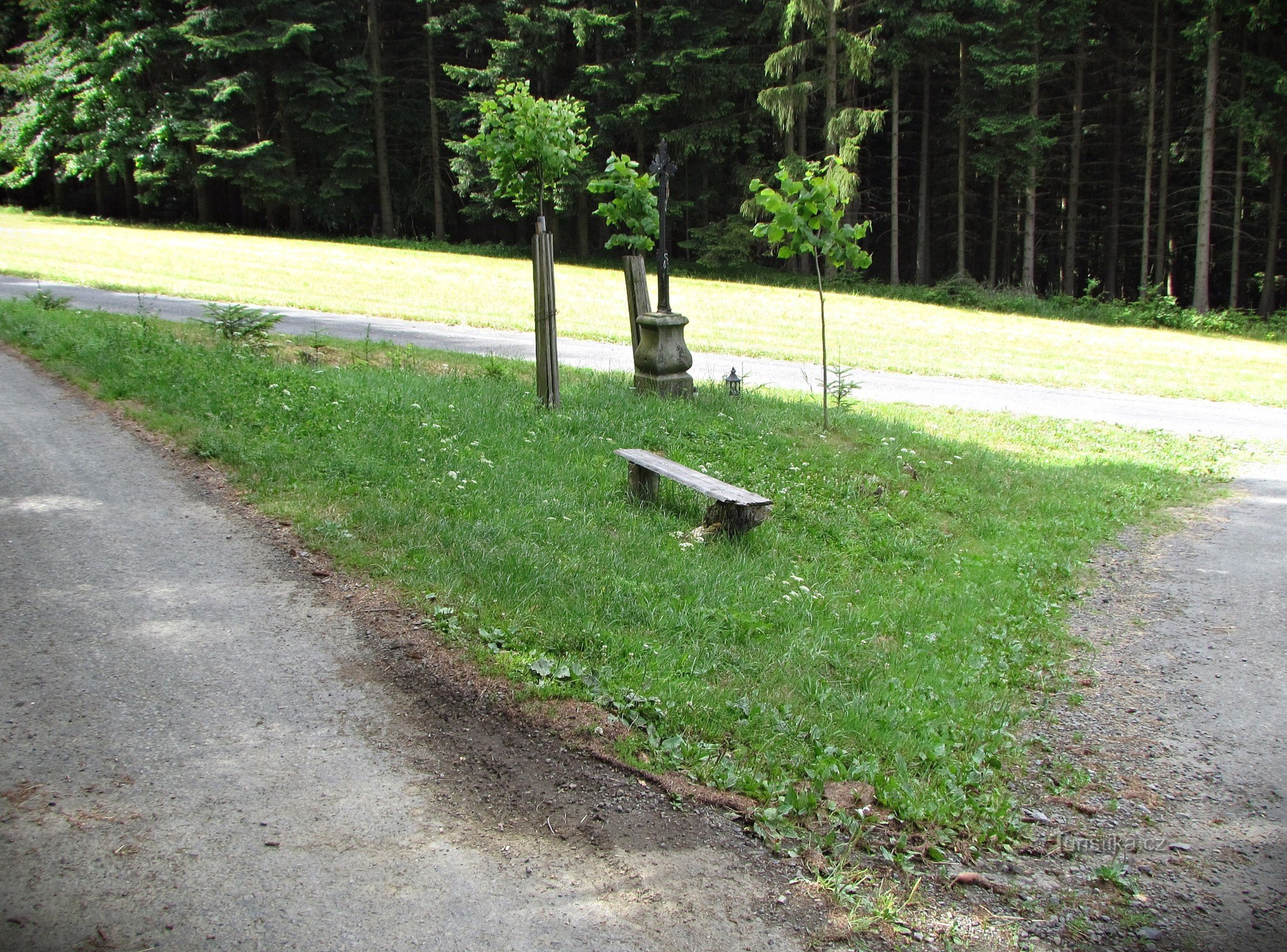 Z rozcestí na Dušné vede k přehradě Bystřičce nádherná vyhlídková cesta, takže je pochopitelně intenzivně využívána jak pěšími (modrá značka a značení NS Klenov), tak i cykloturisty. Nejhezčí panorámata se před vámi otevřou za kopcem Brdo (718 m), jehož vrcholové temeno silnička obchází úbočím, ale za ním se vyšplhá na vlastní hřeben. Pak přijde rozcestí, na němž je umístěn starý litinový…