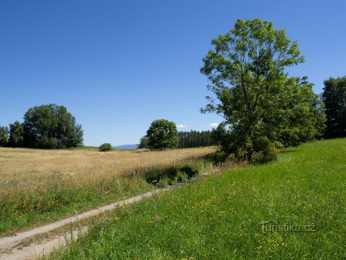 O pěkné vyhlídkové trase mezi rozcestím Pod Janem a samotou Žampach už jsem se před časem zmínil. O tom, že toto místo stojí i za delší zastávku svědčí i fakt, že v mezidobí (kdy jsem tu nějakou dobu nebyl) přibyl u zelené TZ přístřešek s posezení. Ten má samozřejmě turisty a výletníky zlákat k zastávce a tím i upozornit na skvělou vyhlídku, která tu návštěvníka čeká.