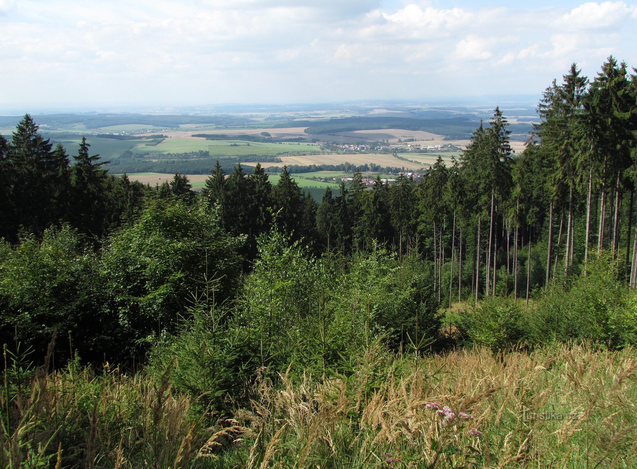 S pěknými výhledy nemusíme počítat jen z vrcholků odlesněných kopců a temen rozhleden, ale stane se, že na ně nečekaně narazíme i na místech, která byla dříve zarostlá. Tak jako třeba, když půjdete v jihozápadní části části Hostýnských vrchů po hřebeni od rozcestí Stiborovy boudy po červené a modré turistické trase směrem k Lysině. Nejprve nás čeká stoupání lesem, pak se lesní cesta několikrát…