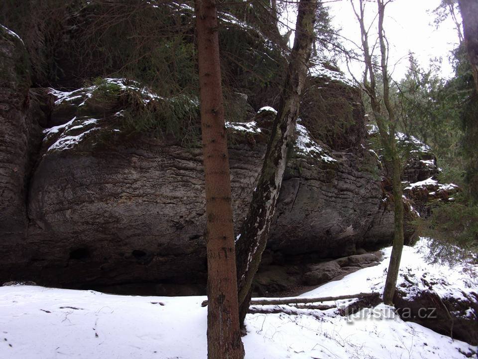Touláme se koulem Starých Splavů, v oblasti pískovcových skal, roklí a skalnatých údolí. Naše trasa začíná ve Starých Splavech, odkud půjdeme po žluté Tz do Černé rokle a odtud pak přes hřeben k převisu zvaném Braniborská jeskyně. Zpět se vrátíme po červené Tz. Braniborská jeskyně je vlastně veliký skalnatý převis pod kterým se údajně v ukrývali lidí v době války. Dnes slouží trampům jako…