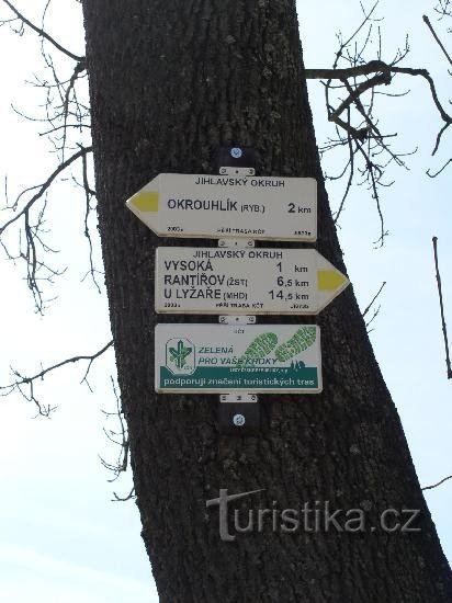 Křižovatka poblíž obce Vysoká asi 5 km jihozápadně od Jihlavy. Prochází tudy dálková cyklotrasa 16 Jihlava Telč a odbočuje cyklotrasa 5215 na Vysokou, Hosov, Rantířov a Vyskytnou.