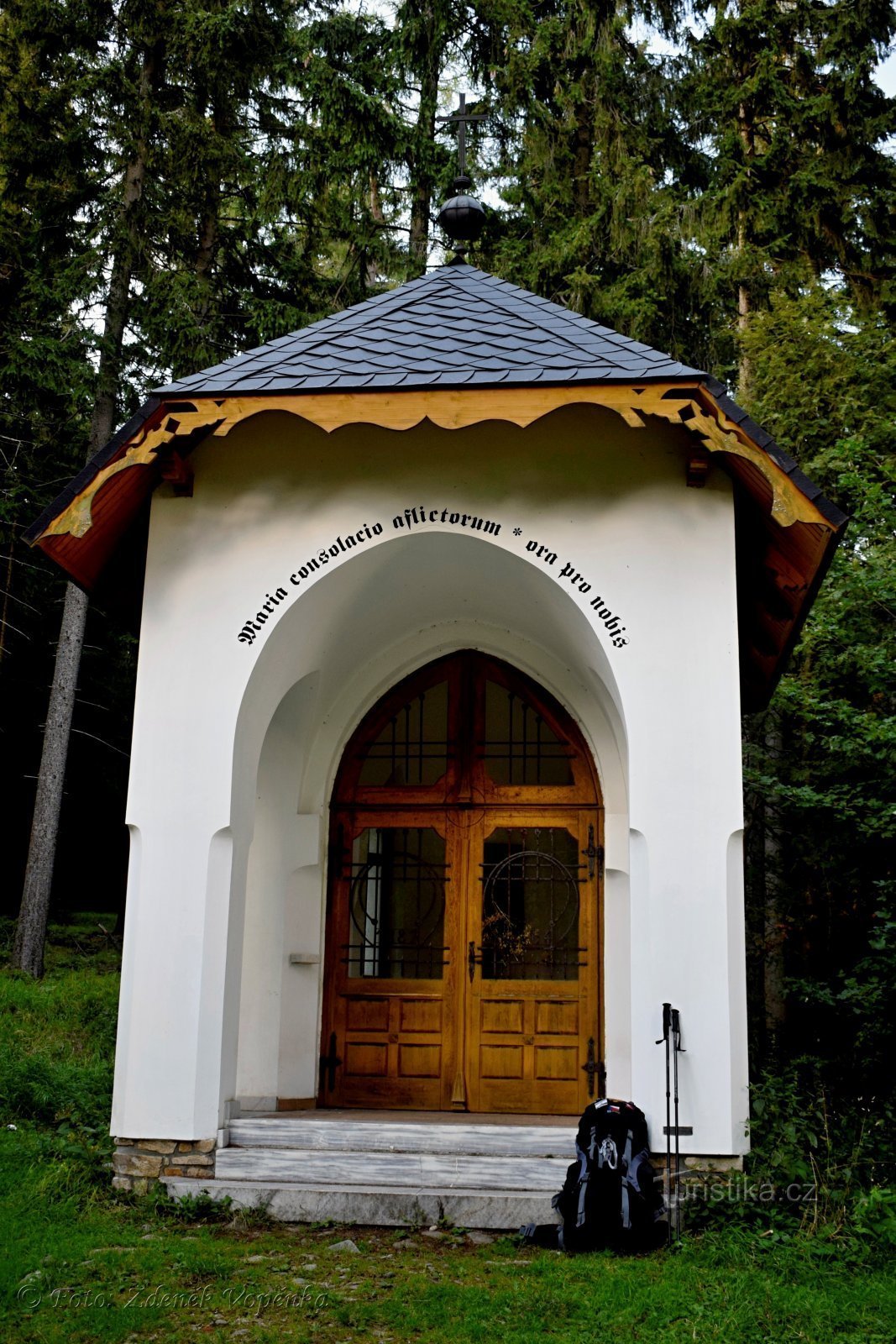 Na tento výlet jsem se moc těšil, západ slunce a svítání u Slůněte na Králickém Sněžníku je podle mnoha cestovatelů opravdu silný zážitek. Auto nechávám u kostelíka ve Stříbrnicích a po modré turistické stoupám nad vesničku ke kapličce Panny Marie. Cesta stále stoupá k Adélinu pramenu a nad ním přecházím na polskou zelenou turistickou značku a po česko-polské hranici strmě stoupám na Sříbrnické…