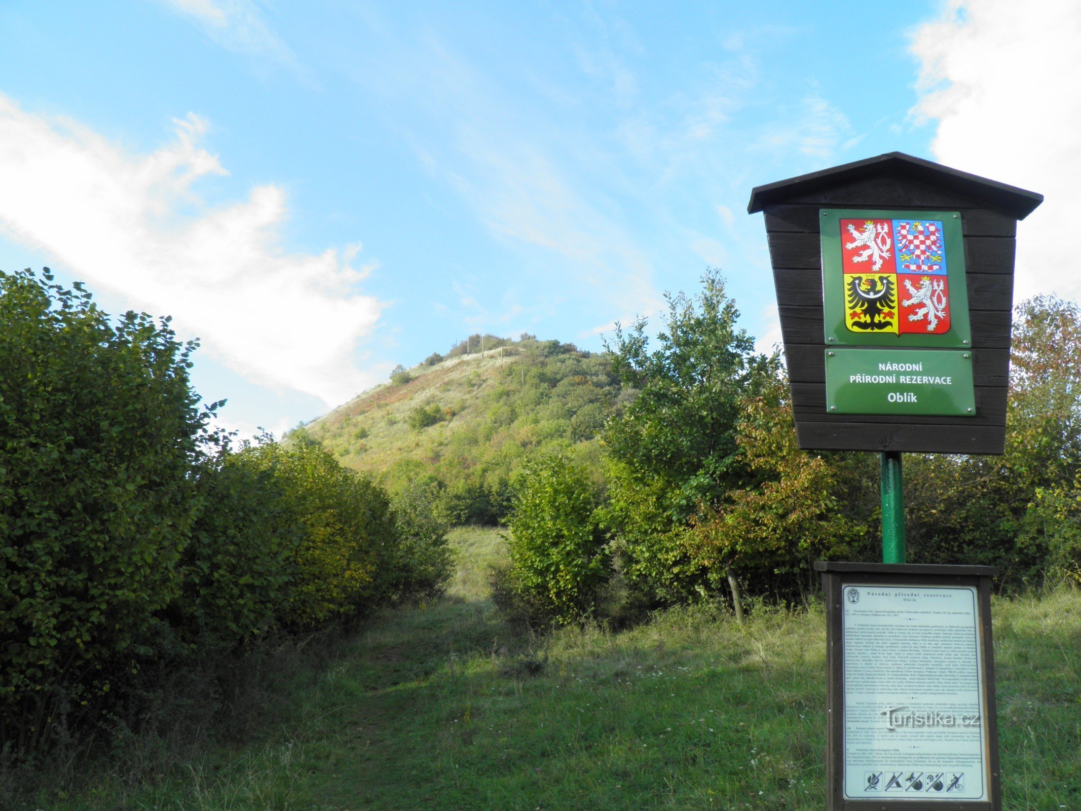 Dalším kopcem na který jsme se vydali byl Oblík /509 m/, který je dominantou lounské části Středohoří, neboli Chožovského středohoří. Holý komolý kužel skutečně od jihu tvarem upomíná na své německé jméno - totiž Hoblik.