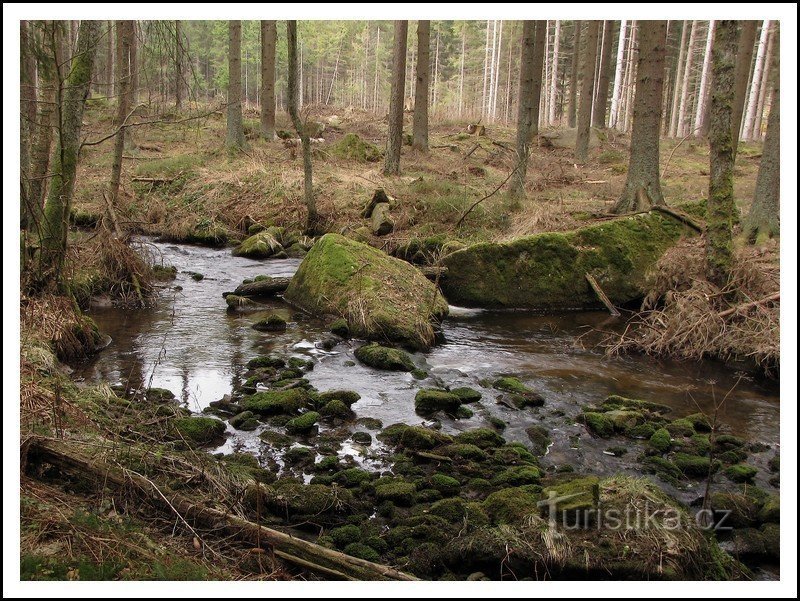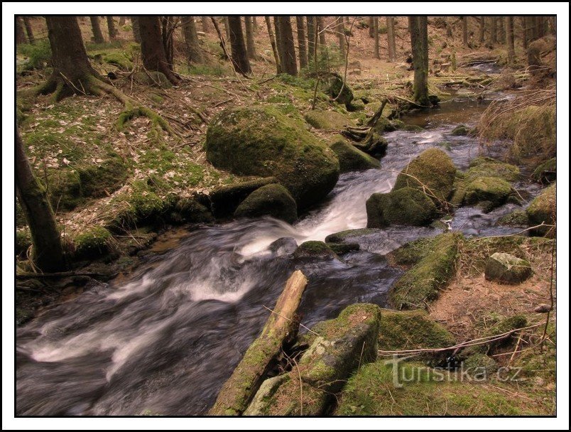 Byl celkem pěkný den a tak jsme vyrazili autem na výlet k Vodopádům sv.Wolfganga. Vodopád..nebo spíše ,peřeje a kaskády na říčce Menší Vltavice je v krásném prostředí nedaleko Vyššího Brodu.Autem se dá zastavit prakticky vedle řeky při silnici.Okolí řeky je krásné,bez zásahu lidských rukou,popadané staré kmeny..balvany obrostlé mechem ,ticho a klid.