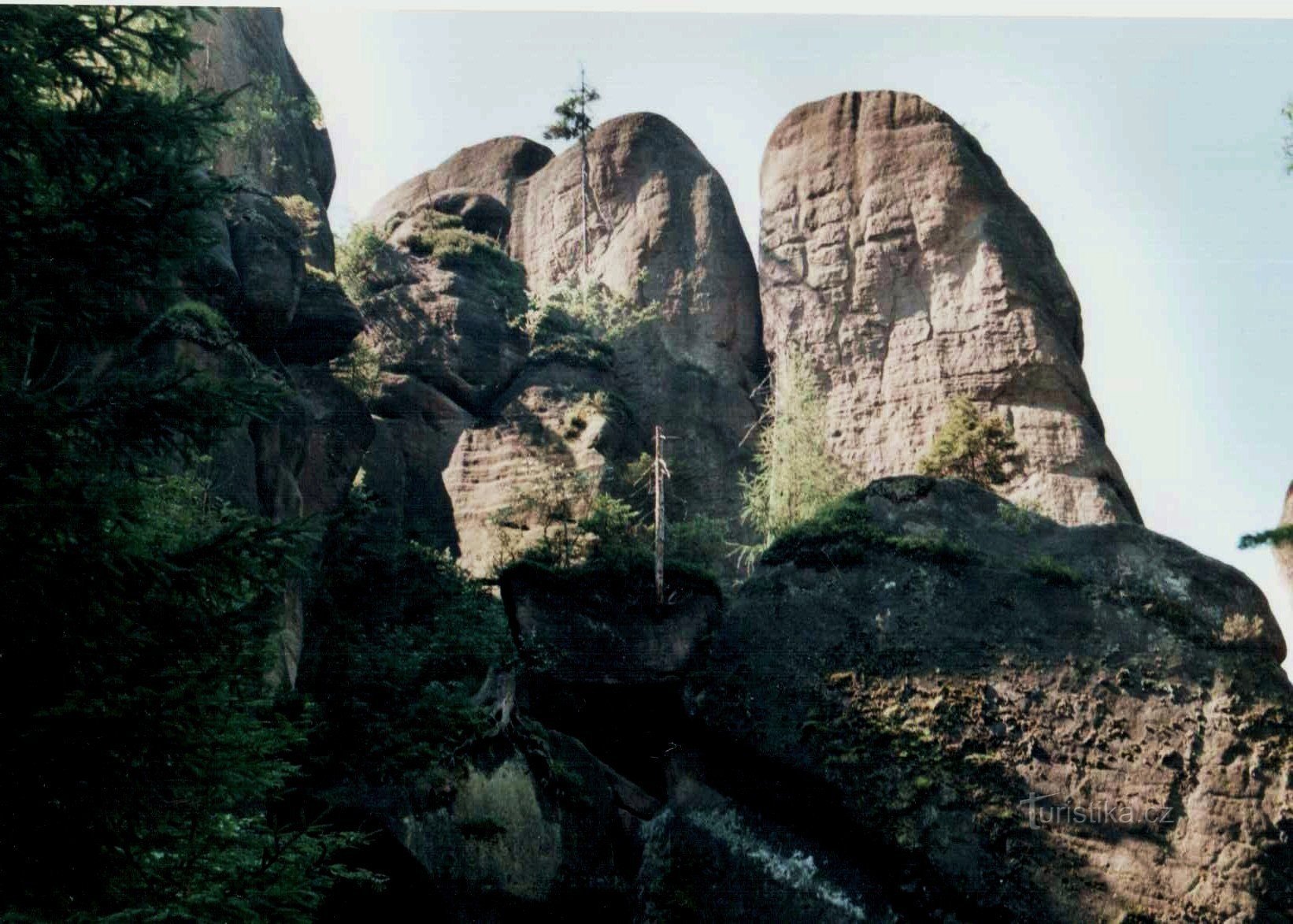 První procházka Broumovskými stěnami vedla na poutí místo Hvězda. Vede tam sice silnička, ale my jsme se vydali skalami, Kovářskou (nebo Kovářovou) roklí. Cesta je pravda chvílemi poněkud neschůdná, ale tu trochu nepohodlí opravdu vyváží nádherné skály.