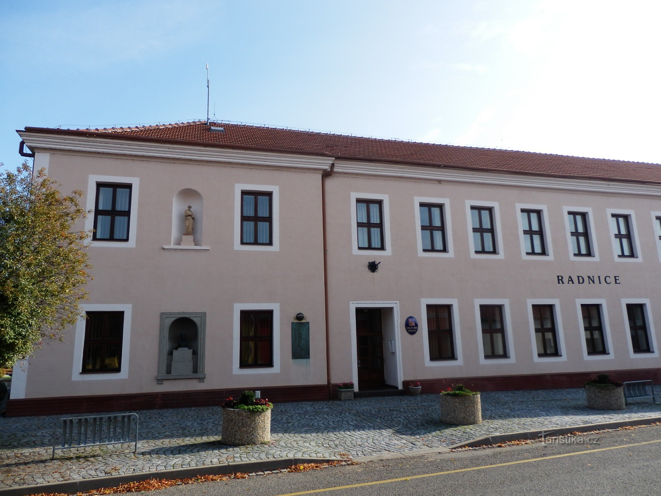 Naše slunečné jihomoravské putování jsme zahájili v obci Rakvice, kam nás dovezl autobus od železniční stanice v Zaječí, navázaný na optimální ranní rychlík z Brna (8:36).
