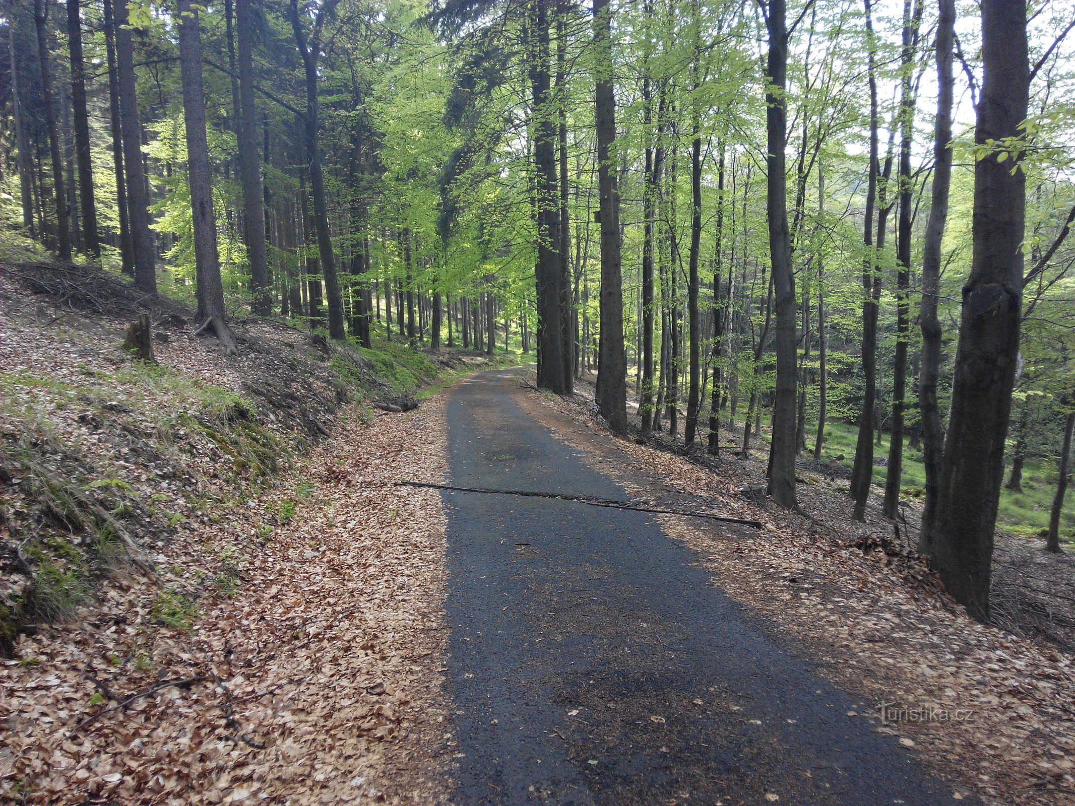 Zde opustíme červenou TZ a pokračujeme pohodlnou vrstevnicovou cestou po trase…