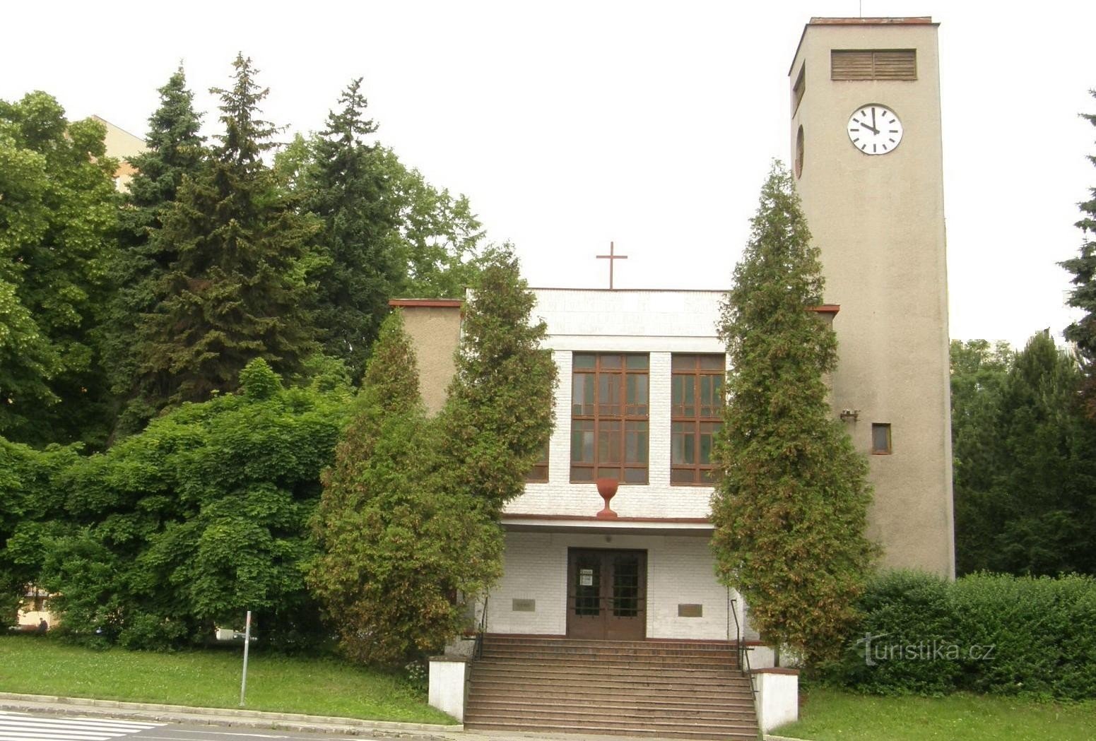 Nedaleko tohoto katolického kostela je zajímavá stavba , a to Husův sbor Církve československé husitské.